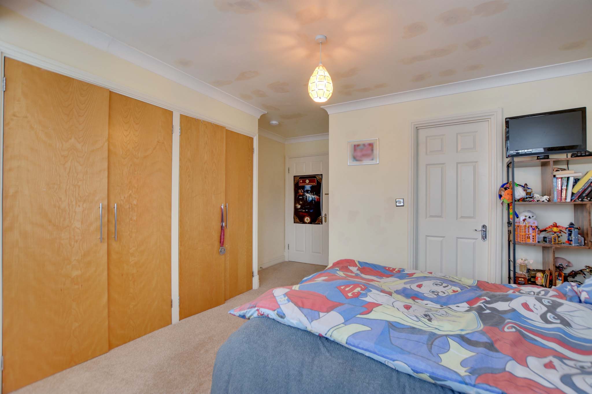 With double-glazed French doors to a Juliet balcony on the rear elevation. Includes inset ceiling spotlights, built-in cupboards, a double-glazed window to the rear elevation, and a radiator.