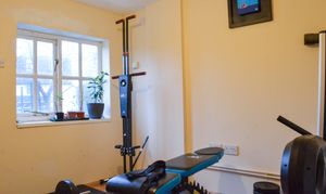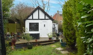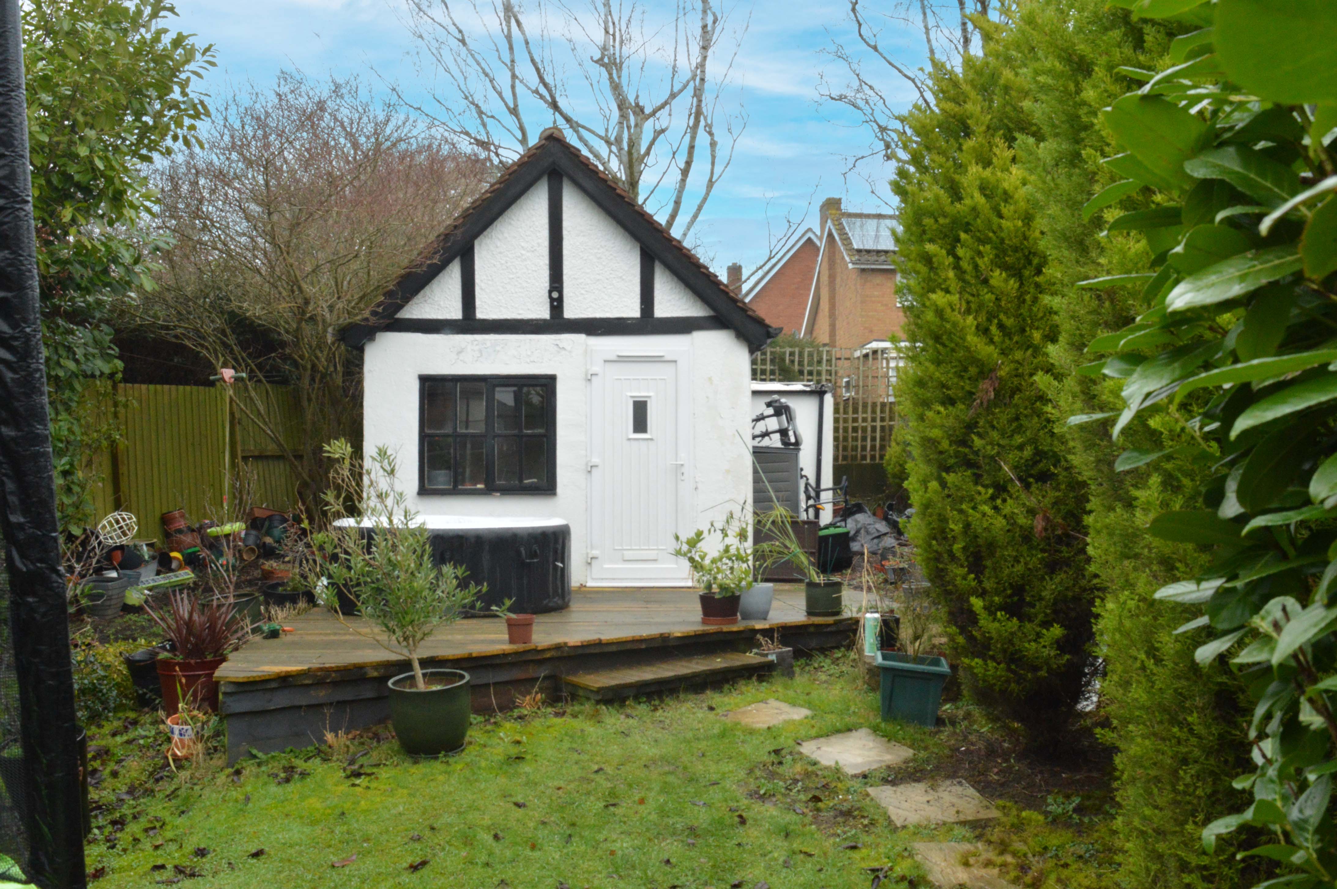 Includes a paved patio to the rear and side, with steps leading up to a mainly lawned rear garden with mature shrubs and trees to the borders, fencing to the perimeter, a raised decked area leading to an outhouse providing a useful gym and storage area with plumbing for a shower room and WC, as well as power and lighting.