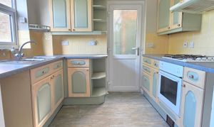 This benefits from a number of wall and base units with rollover worktop, one and half sink and drainer unit, tiled splashbacks, integrated oven unit, gas hob, extractor hood, space and plumbing for washing machine, space for an upright fridge/freezer, coving to ceiling, UPVC double glazed door and window.