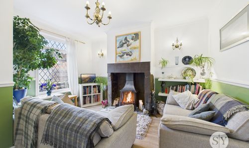 Carpet flooring, ceiling coving, ceiling Rose, under stairs storage, gas fire with marble hearth and wood surround, double glazed uPVC window, panel radiator.