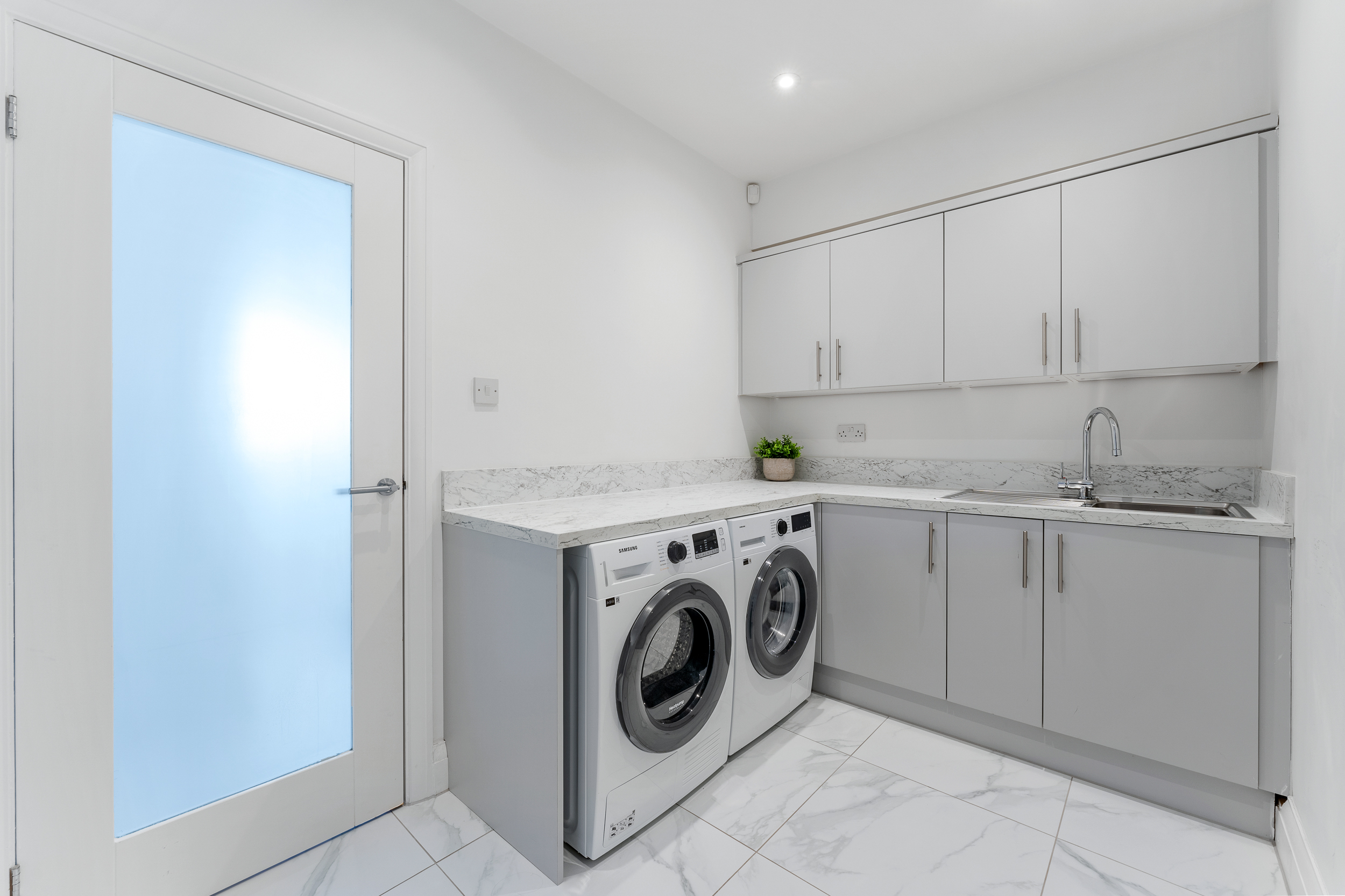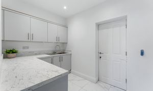 Across the hallway, you’ll find a versatile room that can be used as an office, playroom, snug, or even an additional guest bedroom depending on your needs. Double doors open directly into the kitchen, living, and dining space, enhancing the flow of the ground floor. Bespoke cabinetry provides excellent built-in storage, while the neutral décor ensures the room feels calm, practical, and easily adaptable to suit your lifestyle.