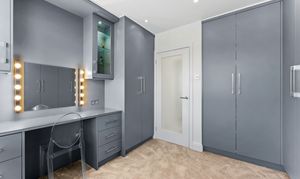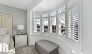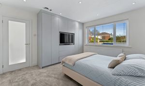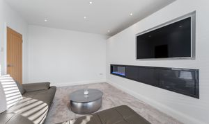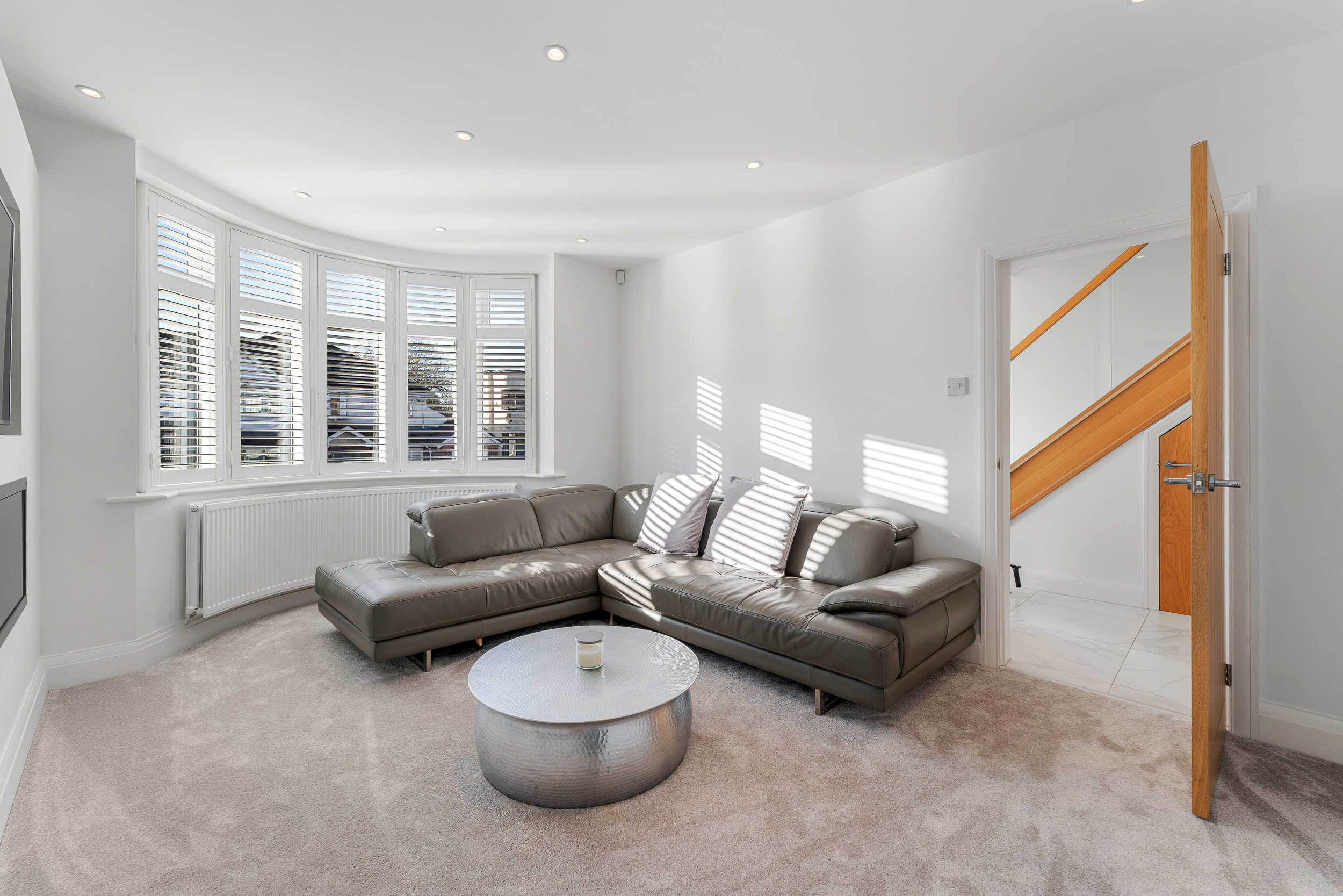 - Two spacious reception rooms including main lounge with bay window, plantation shutters and bespoke media wall