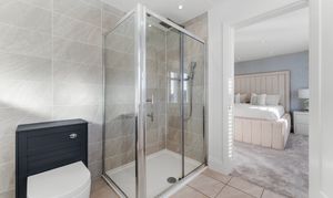 - Principal bedroom with modern en suite featuring a large waterfall shower