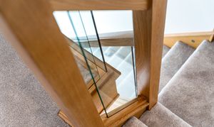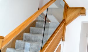 - Stylish glass-balustrade staircase creating a contemporary first impression