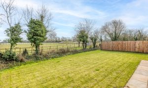Outside, to the rear, the landscaped garden is an excellent size, fully enclosed by fencing and offering beautiful views overlooking fields to the rear. It is laid mainly to lawn, with a paved patio just by the house, providing ample space for garden furniture, cooking meals al fresco with family, or entertaining guests. There is a gate back through to the front of the property, and plenty of scope for new owners to put their own stamp on things.