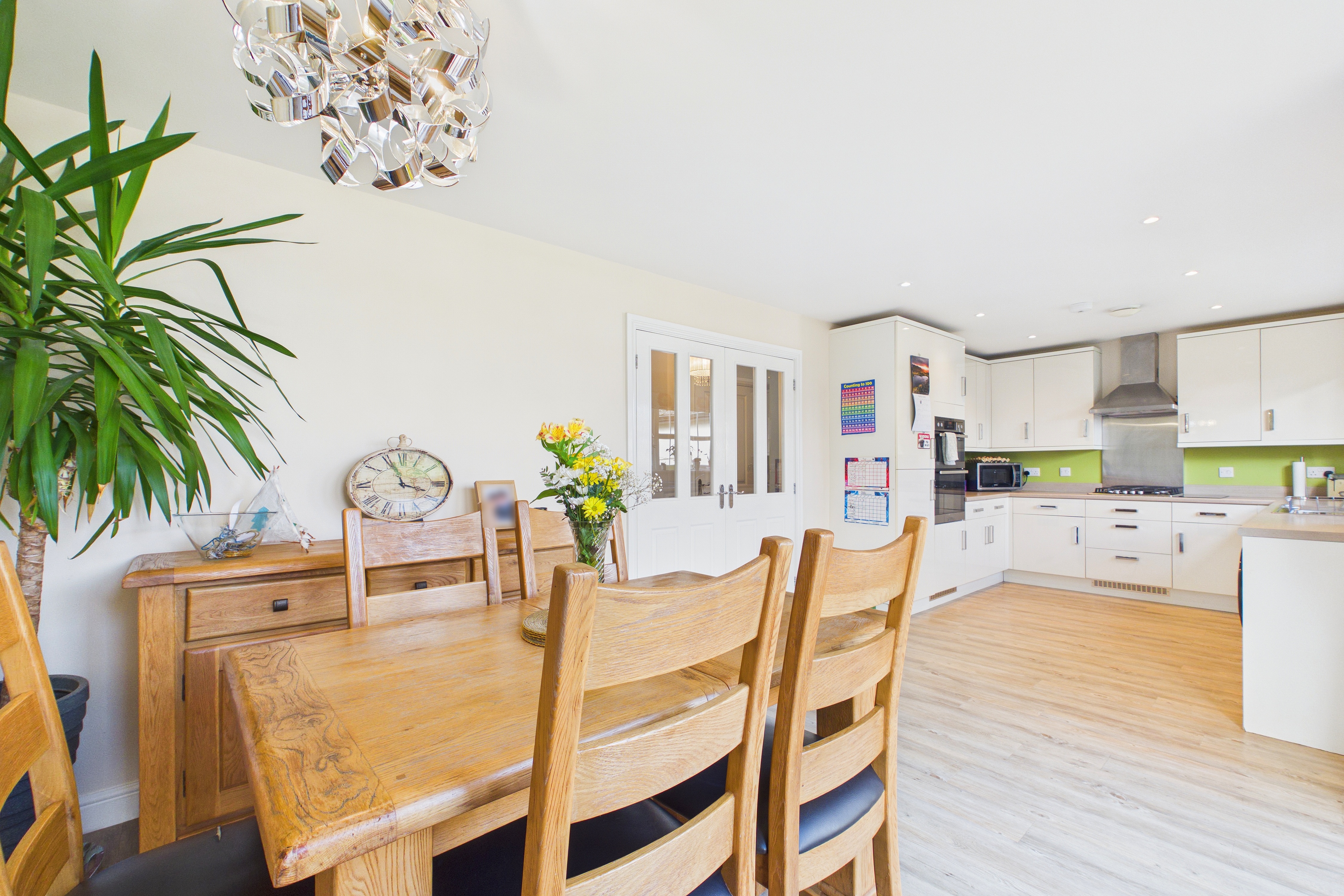The open plan kitchen diner is truly the hub of the home, finished to a high standard with contemporary, modern units and ample workspace, making it ideal for family meals or hosting friends. Patio doors provide a wonderful flow, filling the space with natural light and opening onto the garden.