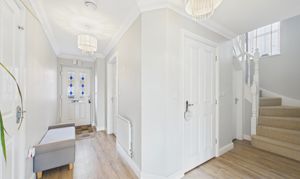 As you step through the front door, you are greeted by a spacious and inviting hallway, where double doors lead you seamlessly into the heart of the home.