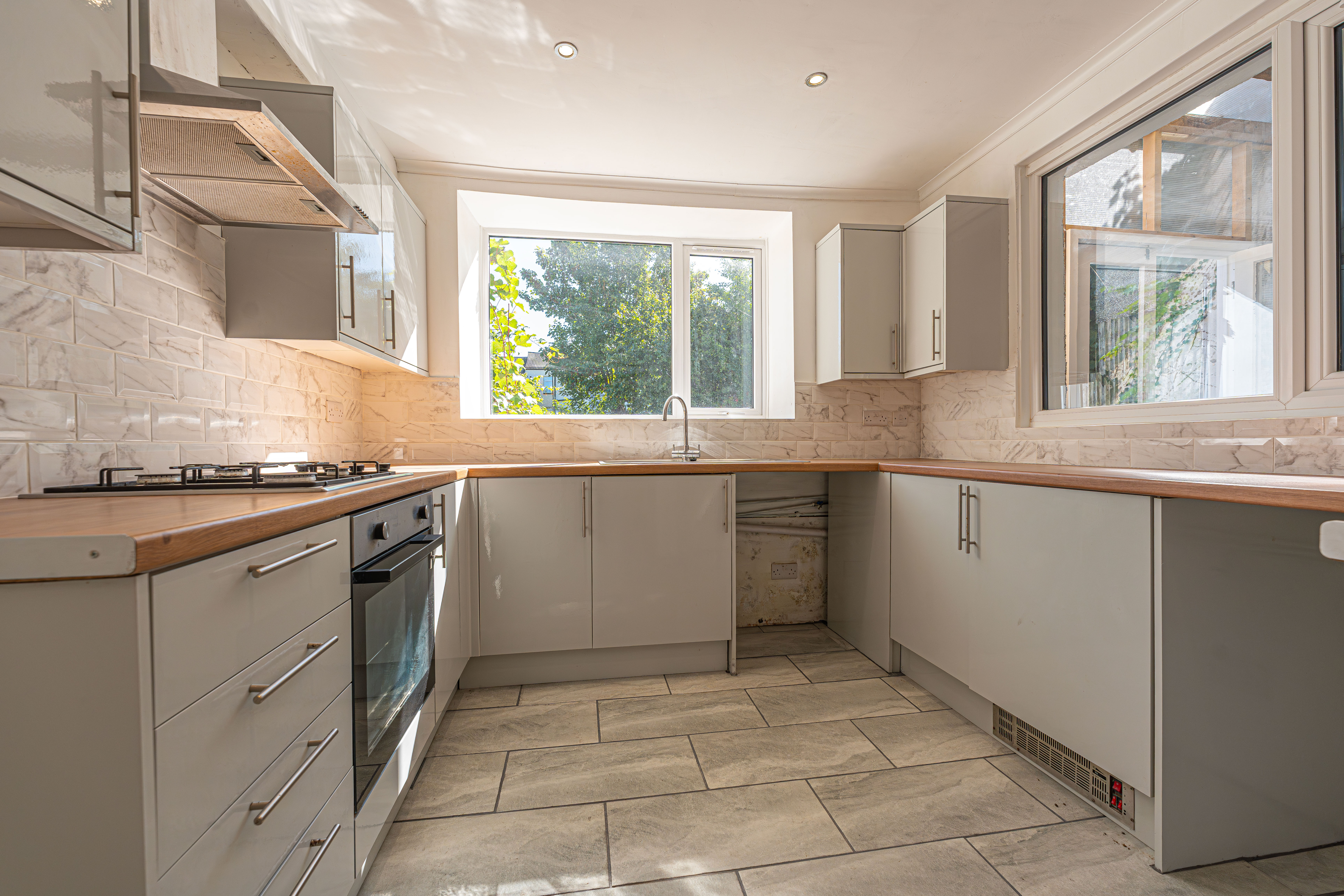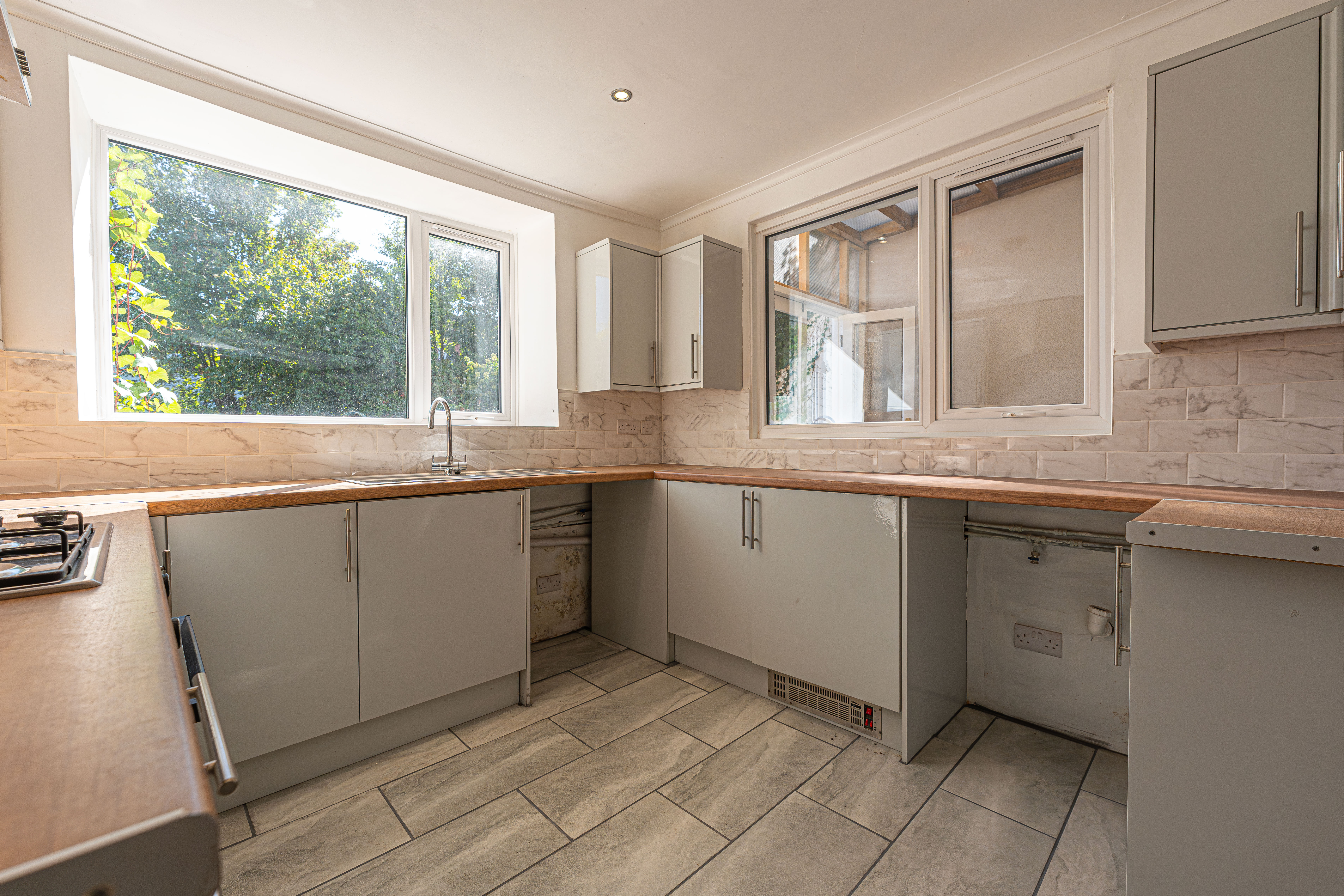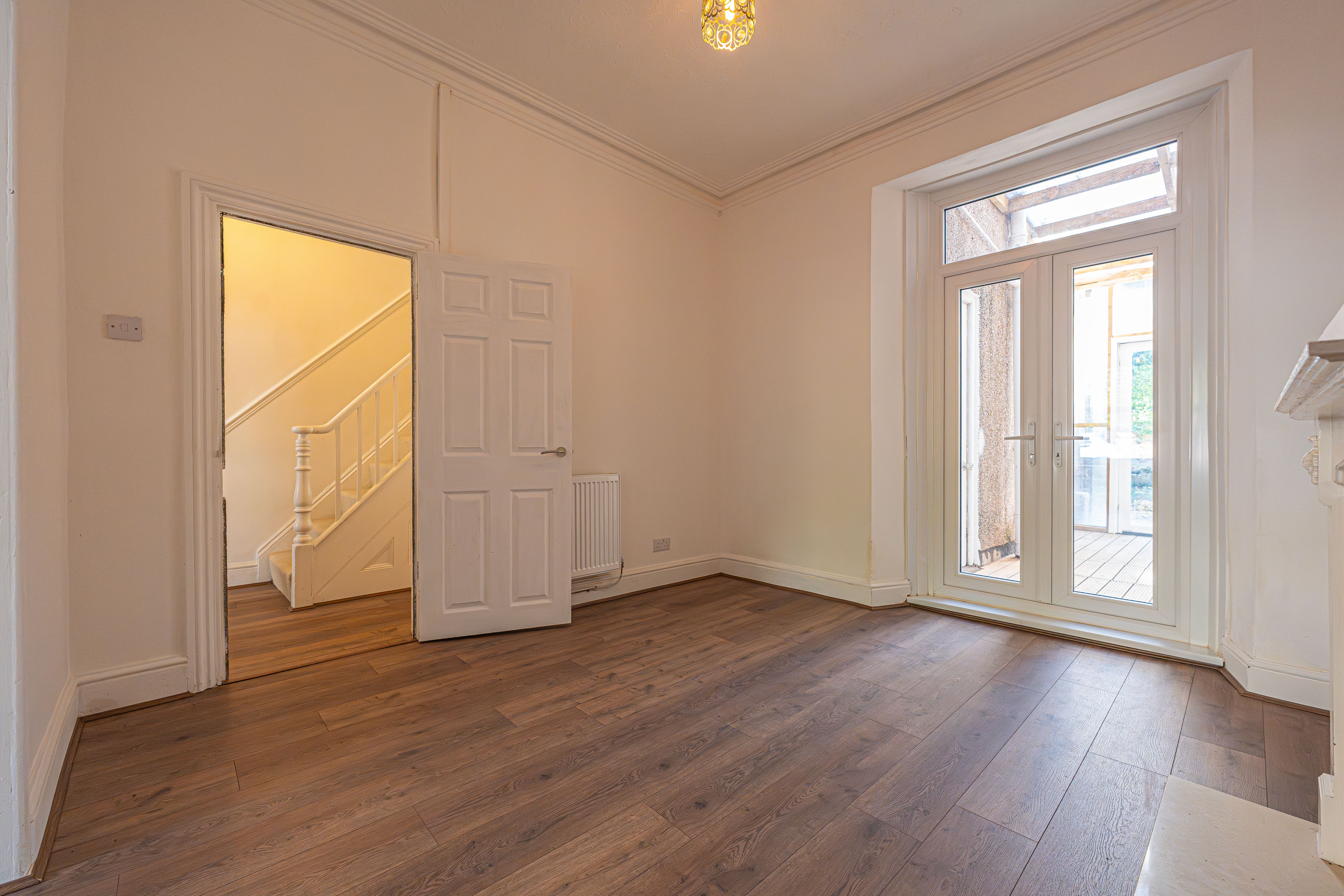 Spanning across three floors, this impressive family home blends timeless period features with contemporary finishes, offering spacious and versatile accommodation across multiple levels. With new carpets and flooring throughout, new windows, doors and radiators, this property is ready to have a family move in straight away. We enter the property through the front with a large hallway, which connects us into two generous reception rooms, which are enhanced with high ceilings, original fireplaces, and plenty of natural light, creating an ideal atmosphere for relaxing, dining, and entertaining guests. The open-plan layout seamlessly connects living and dining areas, highlighting plenty of space for flexible living arrangements, while a conservatory porch can be found towards the rear of the house, for another reception space or a helpful utility room. Also found at the rear of the house is the sleek, modern kitchen, which is well equipped with ample storage space, with plenty of room for additional appliances to join the integrated oven and gas hob. From the kitchen we can also find a useful toilet and a staircase down to the cellar, which offers a practical space for storage and other appliances, presenting an ideal space for managing household tasks.
