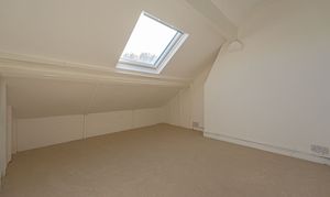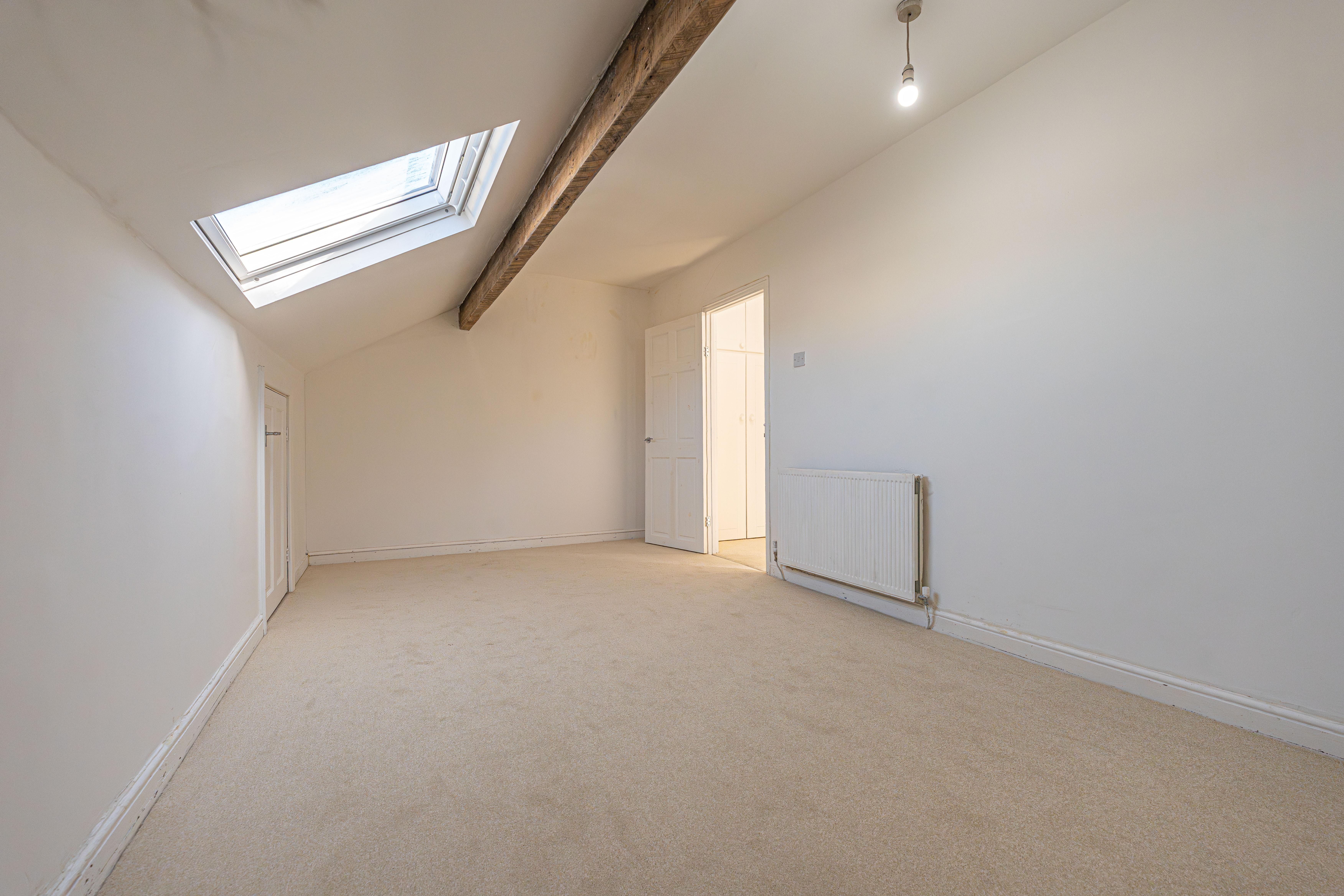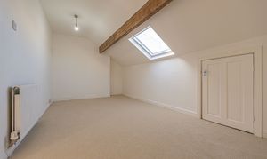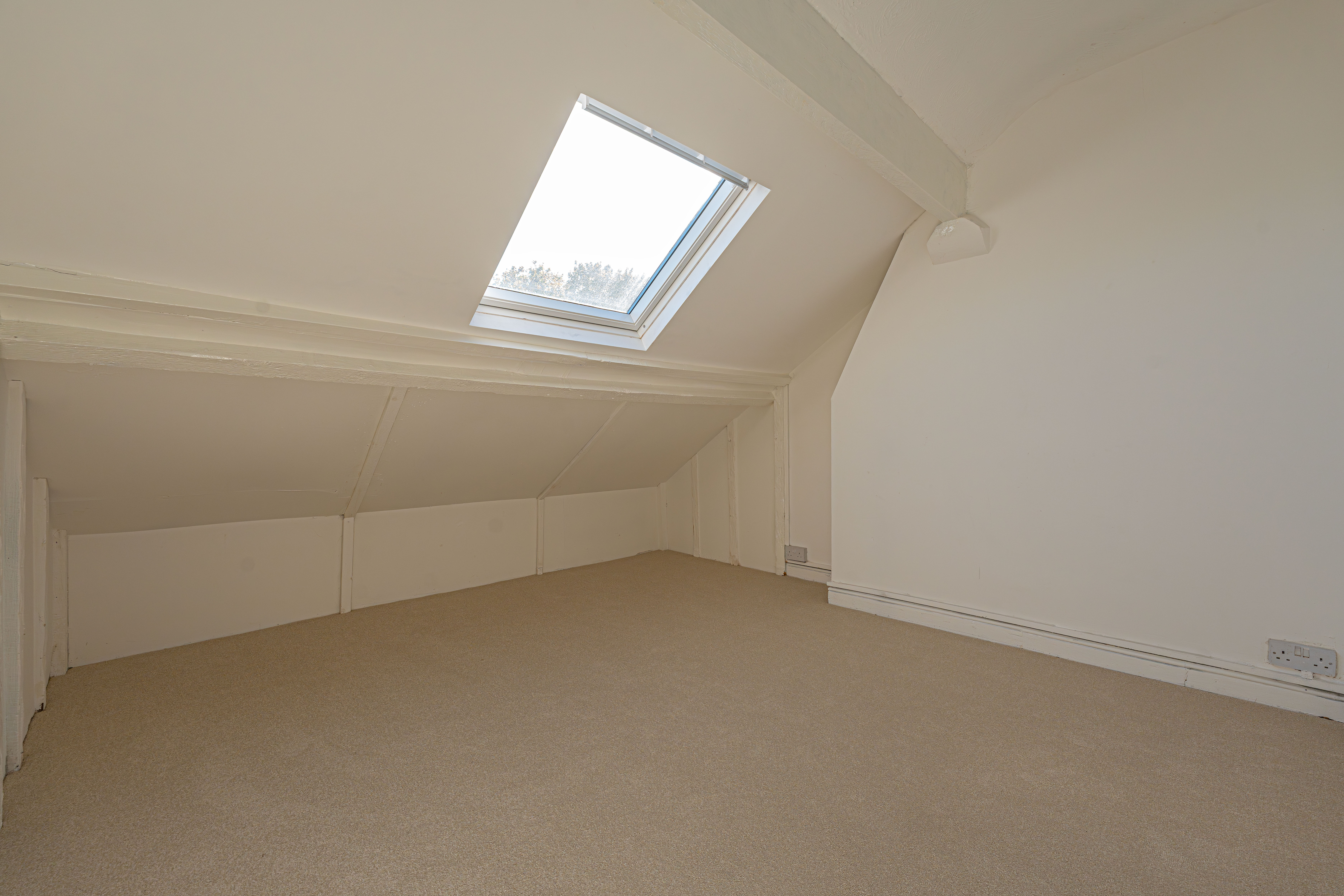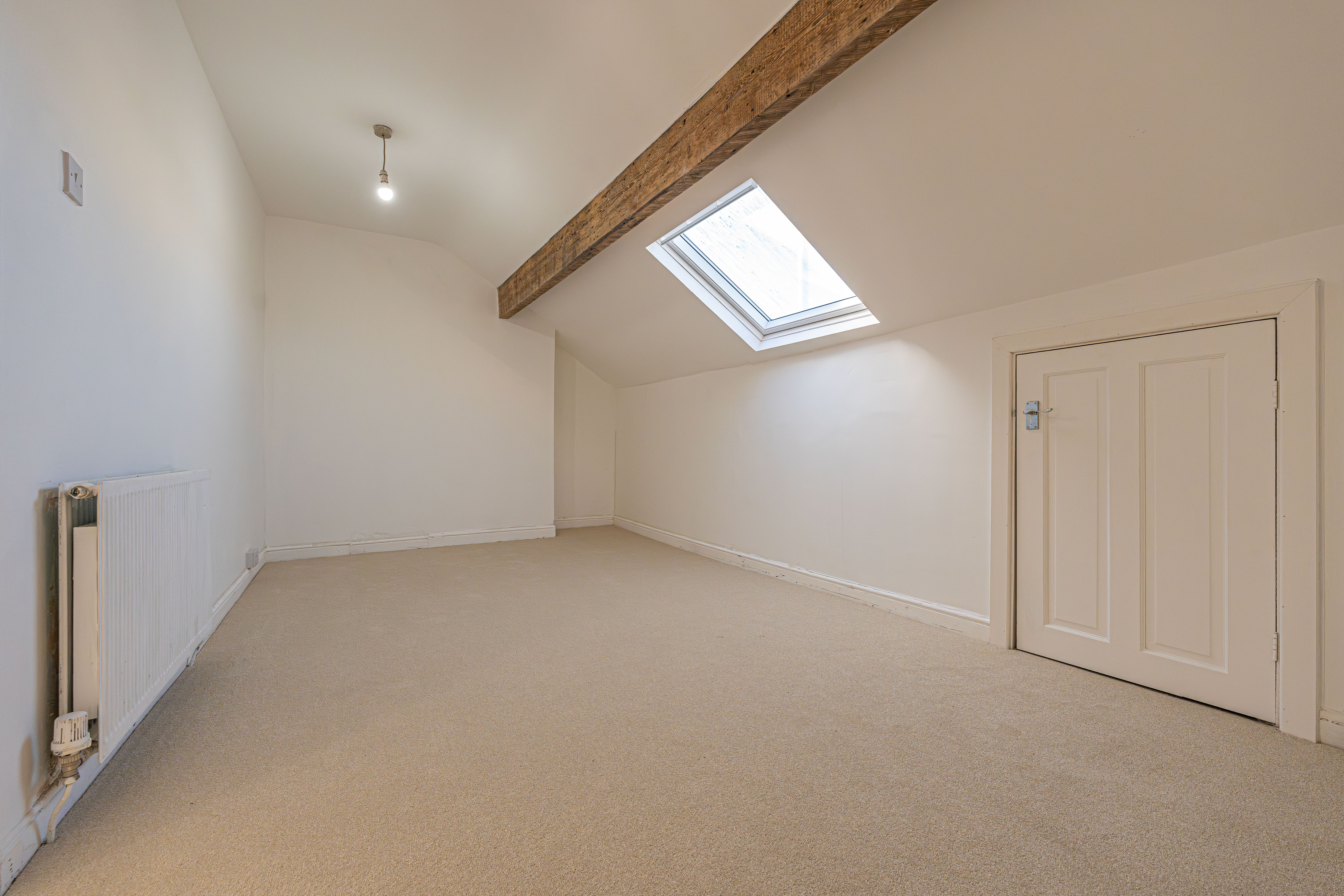 Ascending upstairs once again we arrive at the second floor, where we can find another two bedrooms, finished with neutral décor, plush carpeting, and plenty of light from the fitted velux windows, highlighting a great degree of versatility, making these bedrooms ideal for a home office or a hideaways. Additional highlights include multiple storage cupboards on the top floor, with a communally accessible closet from the hallway, and one of the bedrooms connecting to a sizeable attic closet.