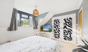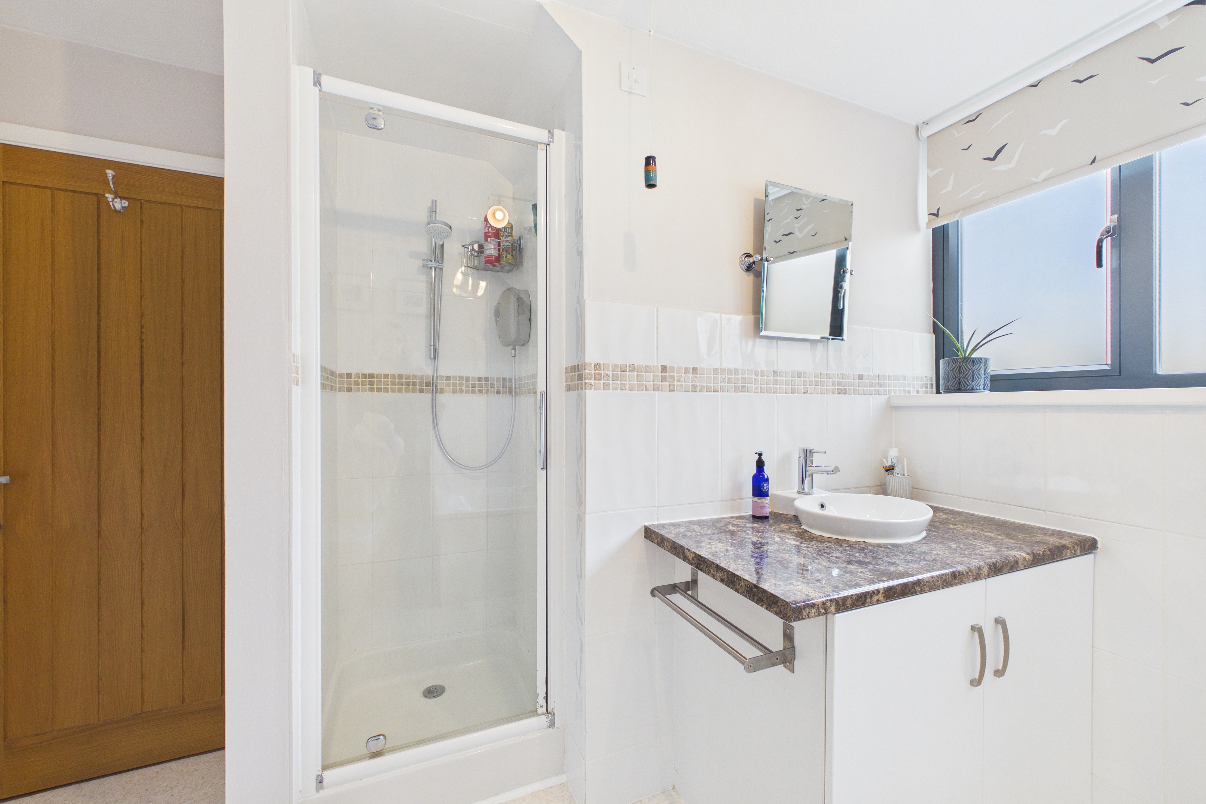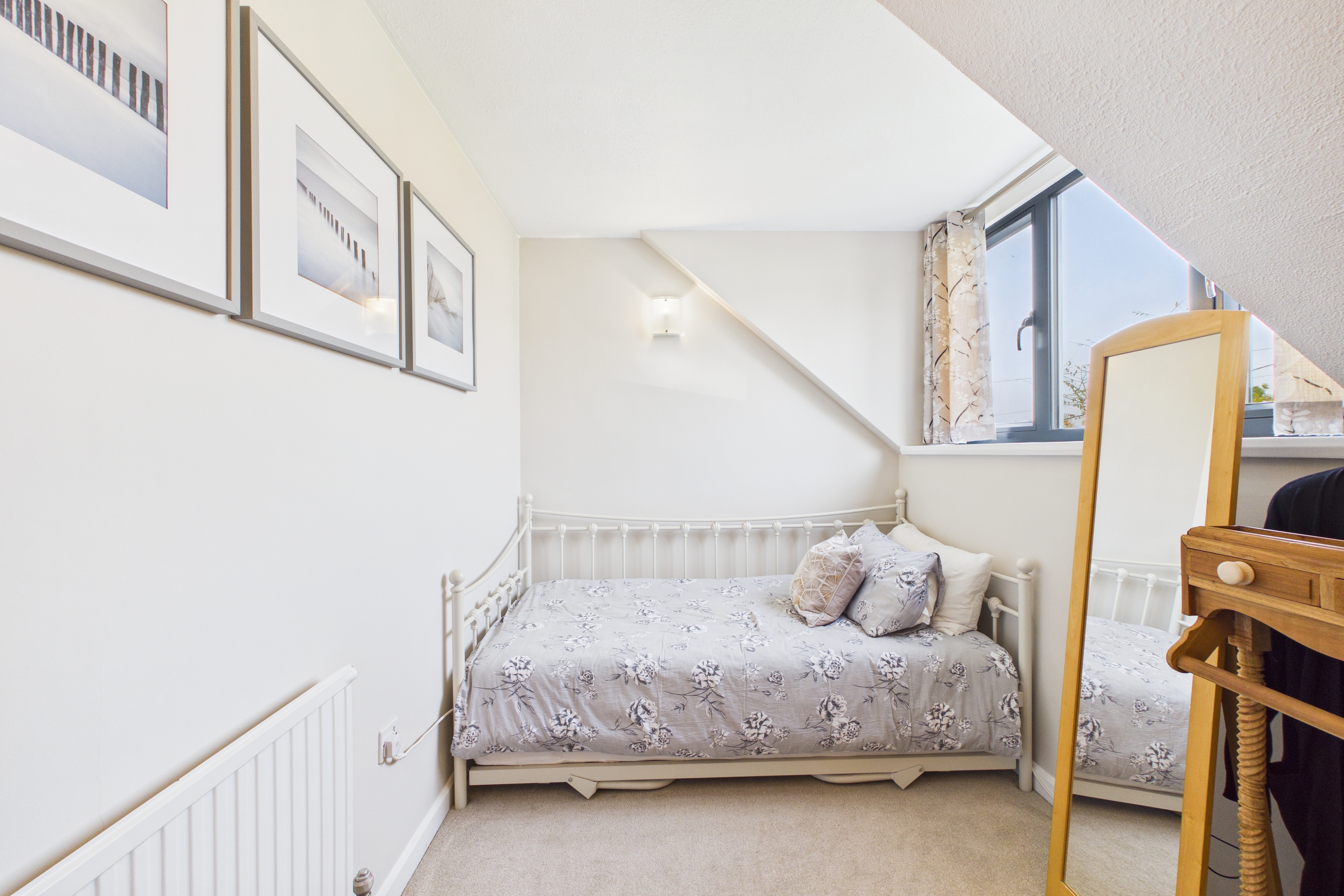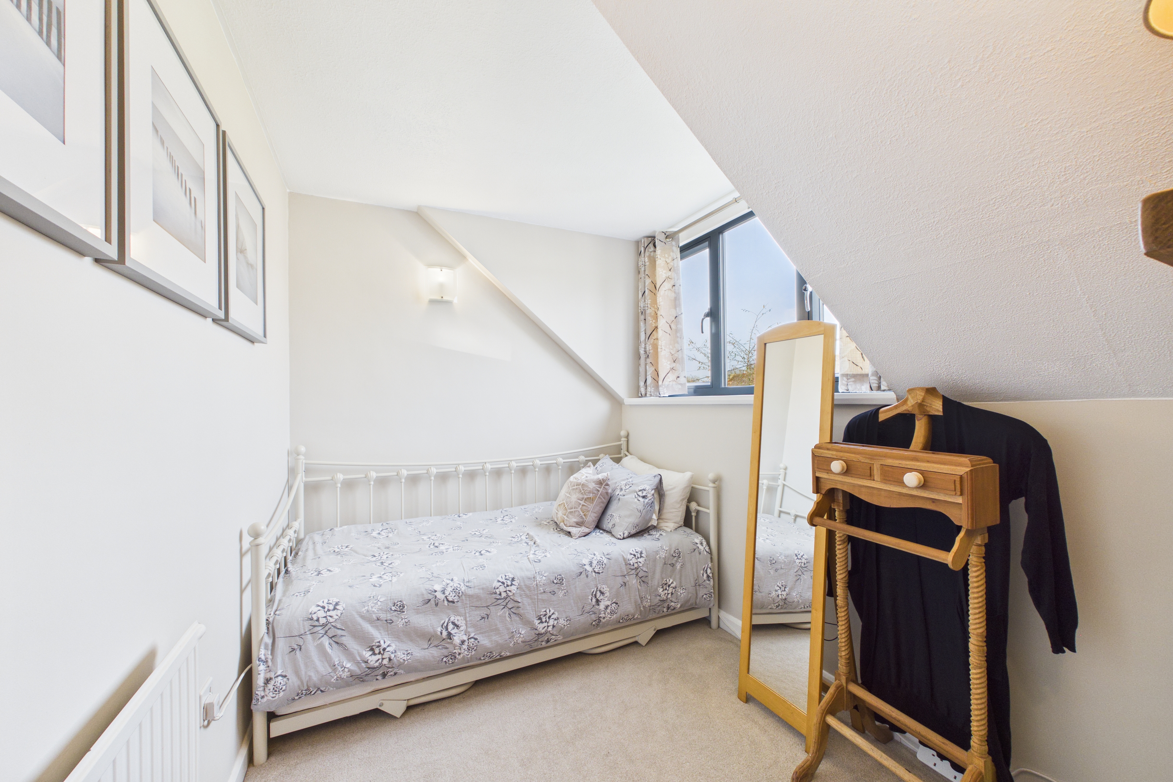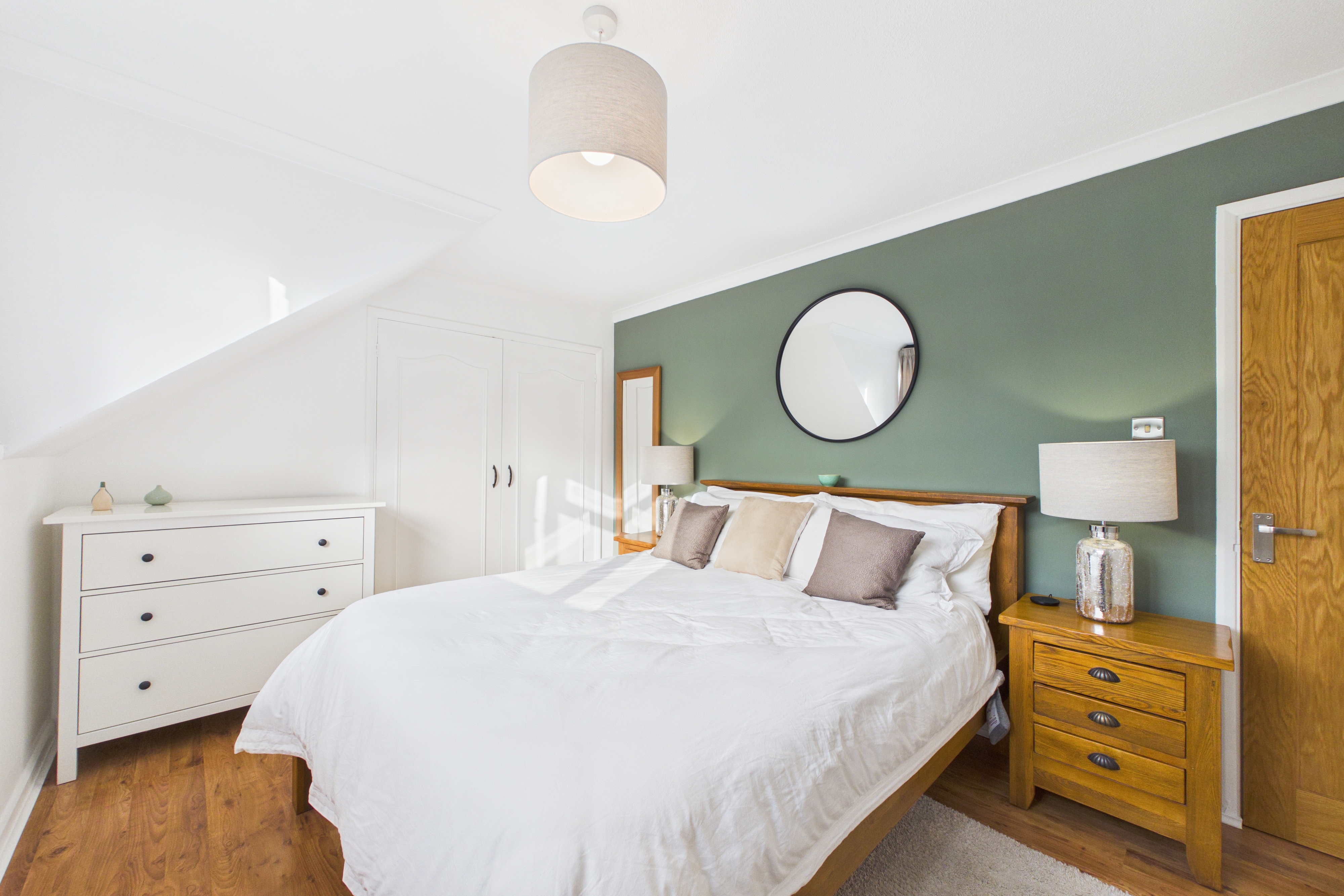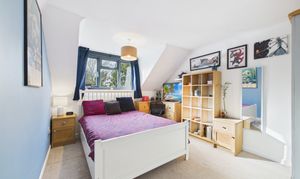 Upstairs, the first floor provides four well-proportioned bedrooms, three of which are generous doubles. Each of the bedrooms feels light and welcoming, with the principal rooms enjoying views across the rear garden and built-in storage. The family bathroom is fitted with a modern suite including a bathtub and a separate shower cubicle.
