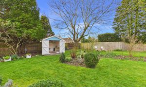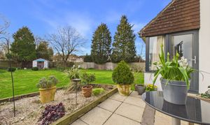 To the rear, the garden is a particularly attractive feature of the home, offering a good degree of privacy and space to enjoy outdoor living. A paved patio provides the perfect setting for outdoor dining and entertaining, while the lawn is bordered by well-established planting that brings colour and interest throughout the seasons. An outbuilding provides further practical and flexible space.