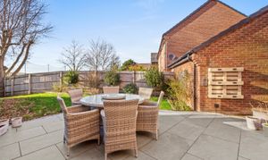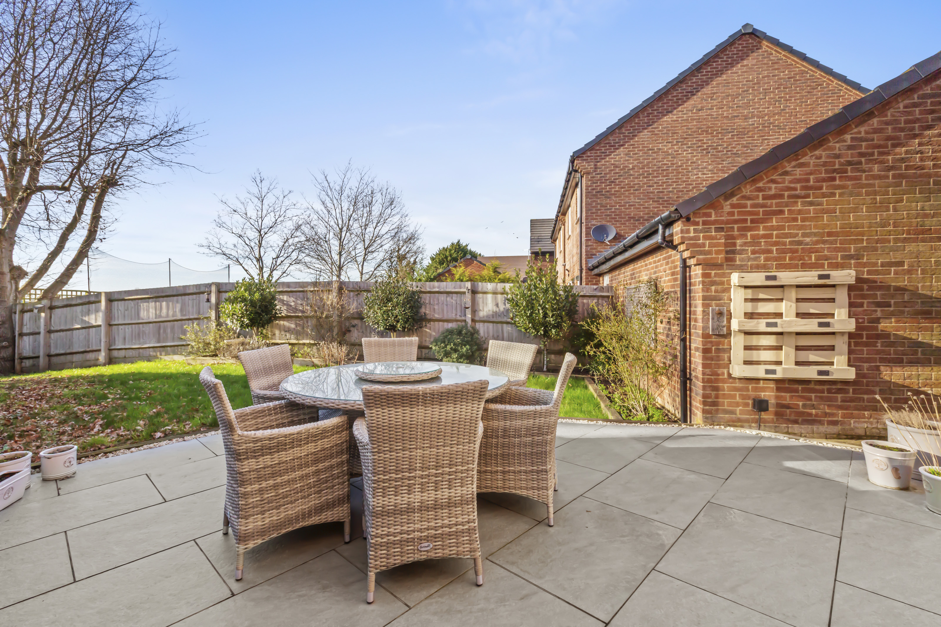 A particular highlight of this home is its enviable position backing directly onto open fields, enjoying a wonderful sense of privacy with no overlooking to the rear — a rare and highly desirable feature. The property also benefits from a beautifully maintained south west facing garden, ideal for enjoying afternoon and evening sun. In addition, there are two separate driveway parking spaces, a significant advantage and something seldom found on homes of this style, along with a garage providing secure storage or further parking options.