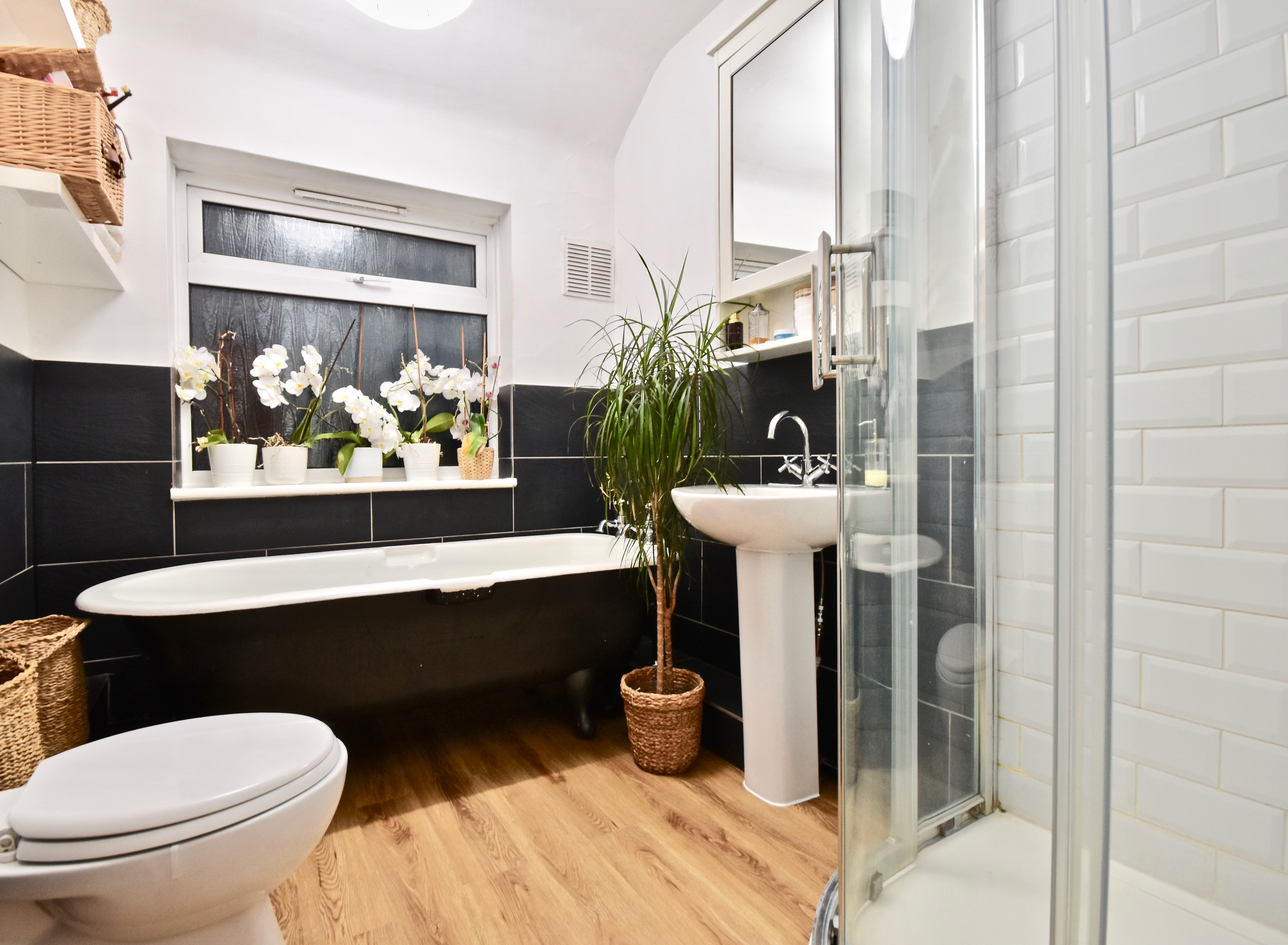 Upstairs, the first floor features a spacious front-aspect main bedroom, a second well-proportioned double bedroom overlooking the garden, a modern four-piece family bathroom, and access to excellent storage via a large loft space.