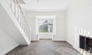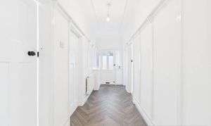 - Herringbone flooring throughout