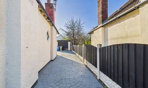 The heart of the home is the modern kitchen, complete with sleek white units, integrated appliances including a built-in oven and stainless steel extractor fan, and elegant herringbone flooring. French doors open directly onto the garden, providing seamless indoor-outdoor living and making this space ideal for entertaining or family gatherings. The exterior of the property is equally impressive, featuring a spacious paved driveway with ample off-road parking, a detached garage for additional storage or parking, and a beautifully maintained front and rear garden. The private rear garden offers a lush lawn, a patio area perfect for al fresco dining, and mature privacy hedges, creating a tranquil and secure outdoor retreat. This detached dormer home combines modern finishes, ample natural light, practical built-in storage, and generous outdoor spaces, making it a standout property that is ready for you to move in and enjoy.