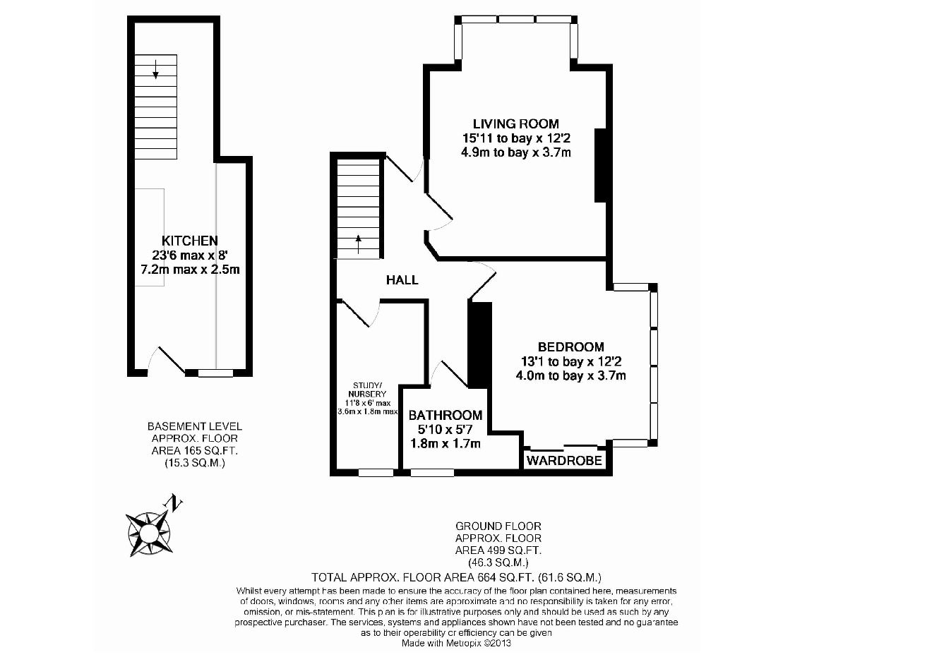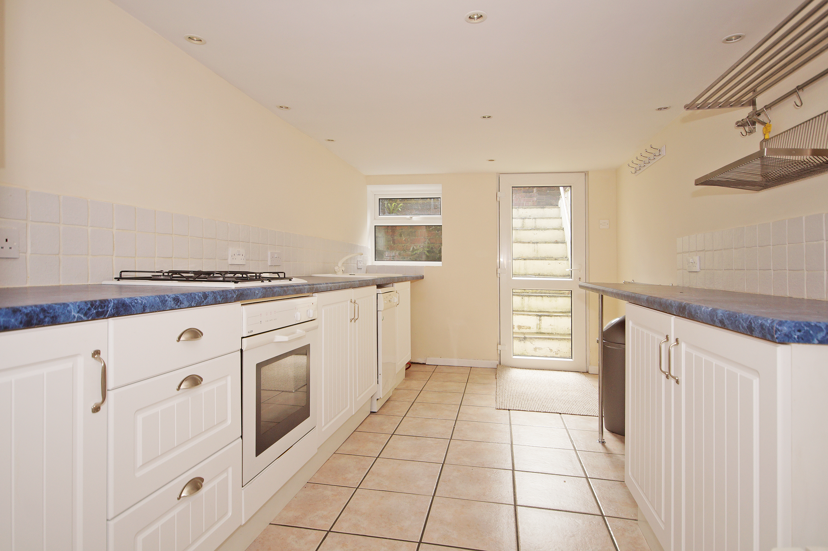 With gas fired central heating, stripped internal doors and double glazing the flat comprises in brief. Communal entrance hall, private ground floor reception hall, bay fronted sitting room with a feature fireplace and a living flame gas fire. High ceiling cornice and picture rail. Bedroom one with fitted wardrobes. Nursery/study room/single bedroom two with cupboard. Partially tiled bathroom with bath and shower over and heated towel rail. Lower ground floor hall and fitted kitchen with recessed appliances, tiled floors and access door to the private rear courtyard garden.