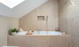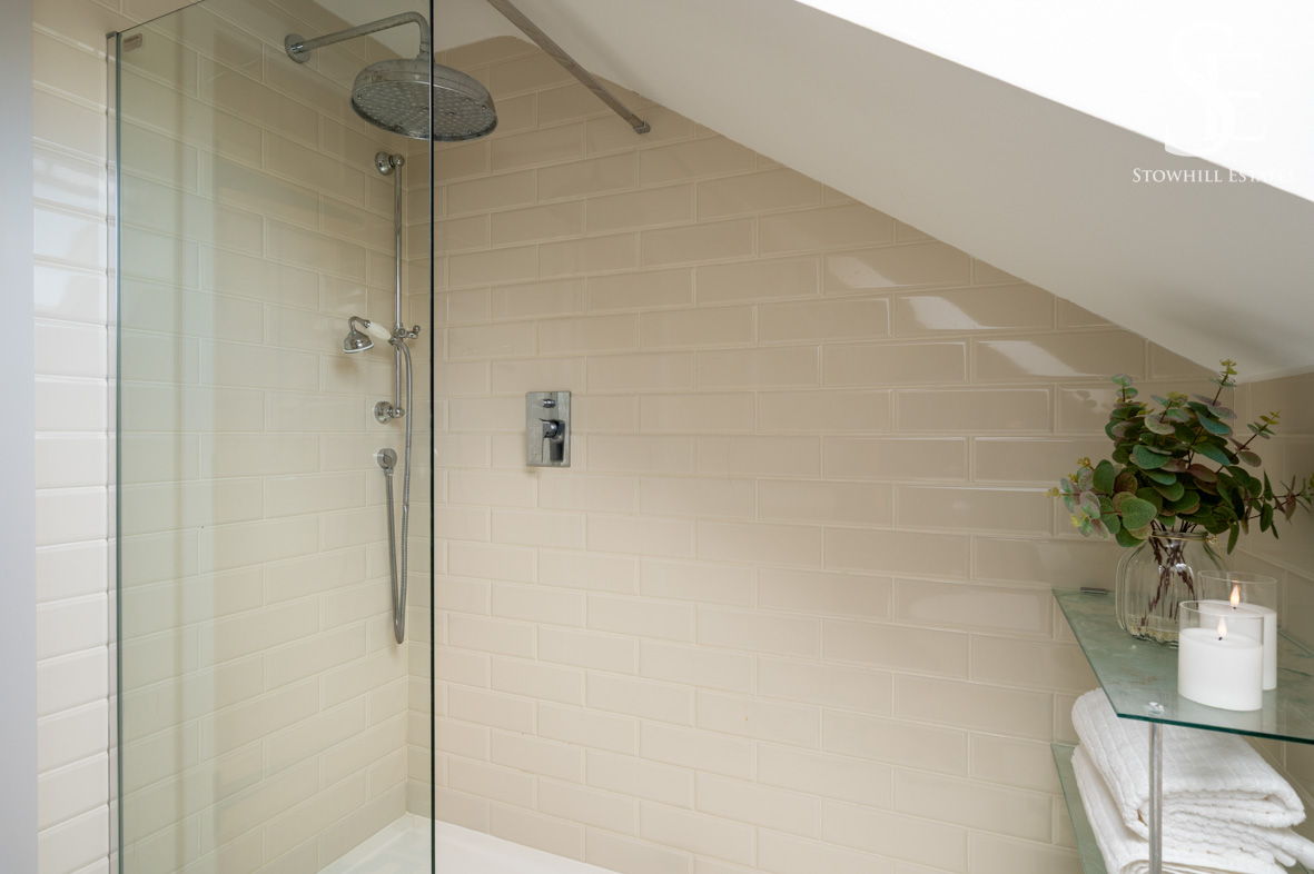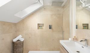 A family shower room with walk-in shower and a separate bathroom with double-ended tub serve the additional bedrooms.