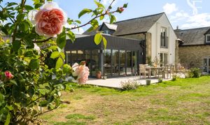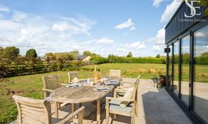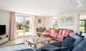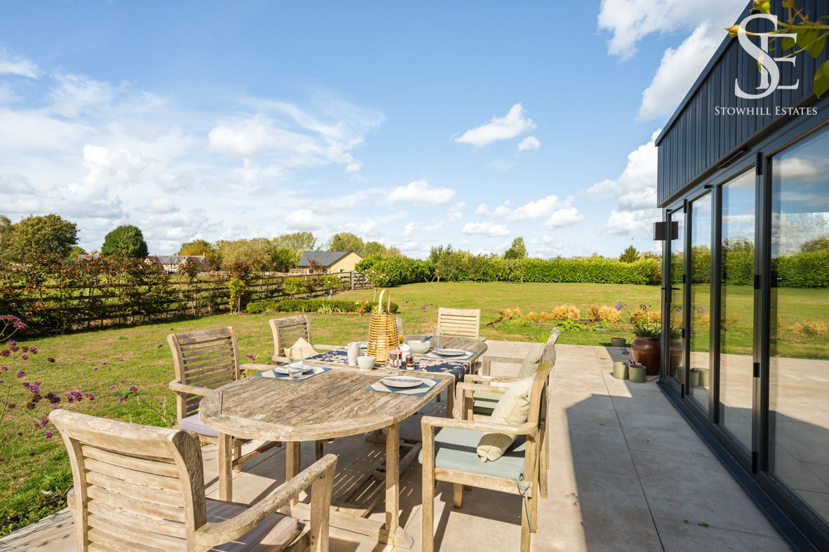 The paved terrace is easily accessed from the sitting room and kitchen-diner, creating an excellent space for outdoor dining. The garden is ideal for family activities, from croquet and football to quiet relaxation.