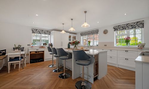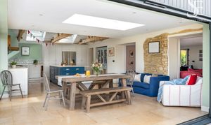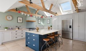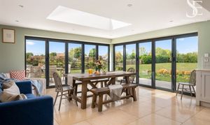 - Vaulted kitchen-diner with beams and bi-folds to garden