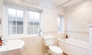 The house bathroom is fitted with a neutral three-piece suite comprising a low-level WC, wash hand basin and a bath with shower over, completing the first floor accommodation.