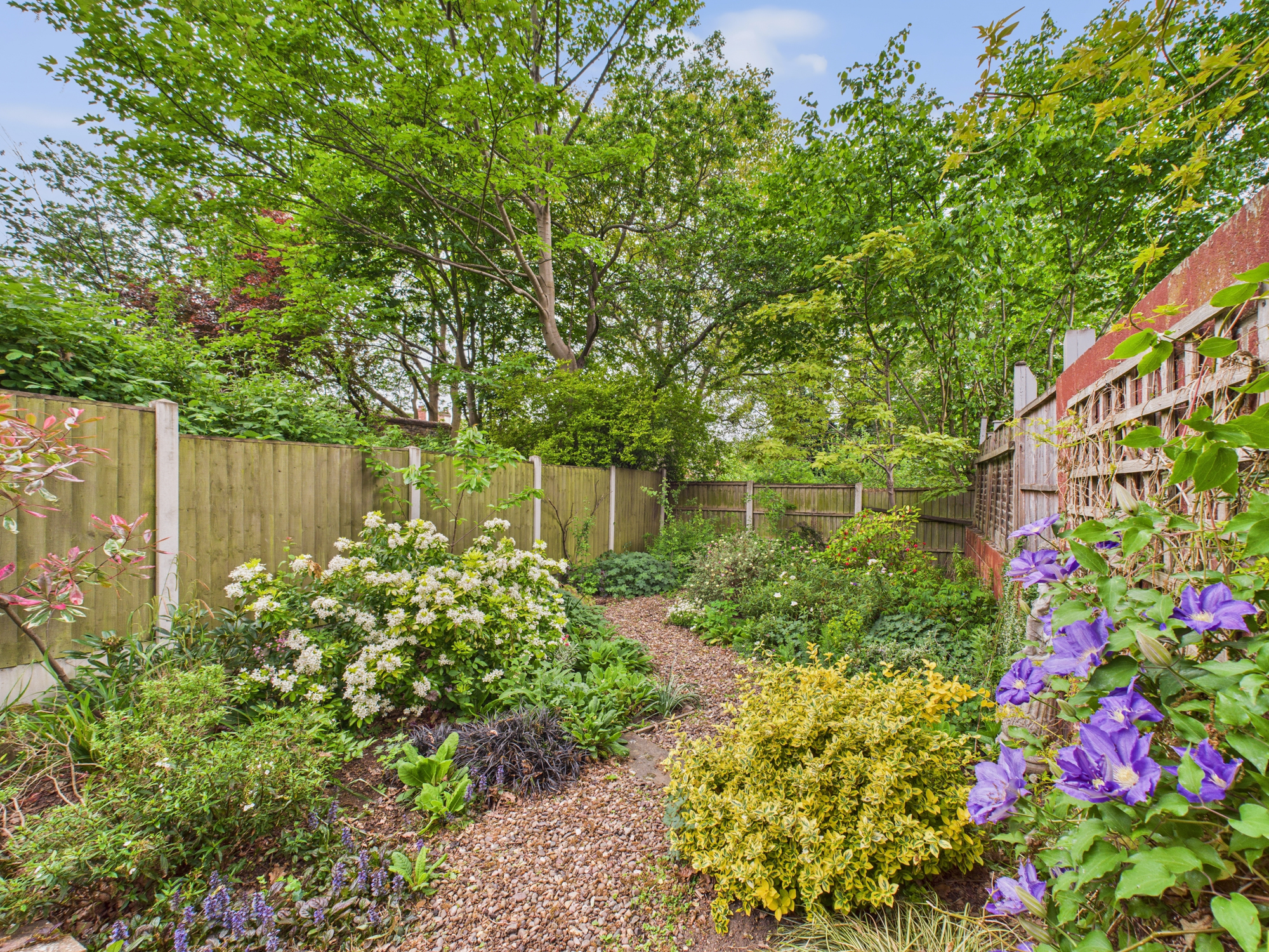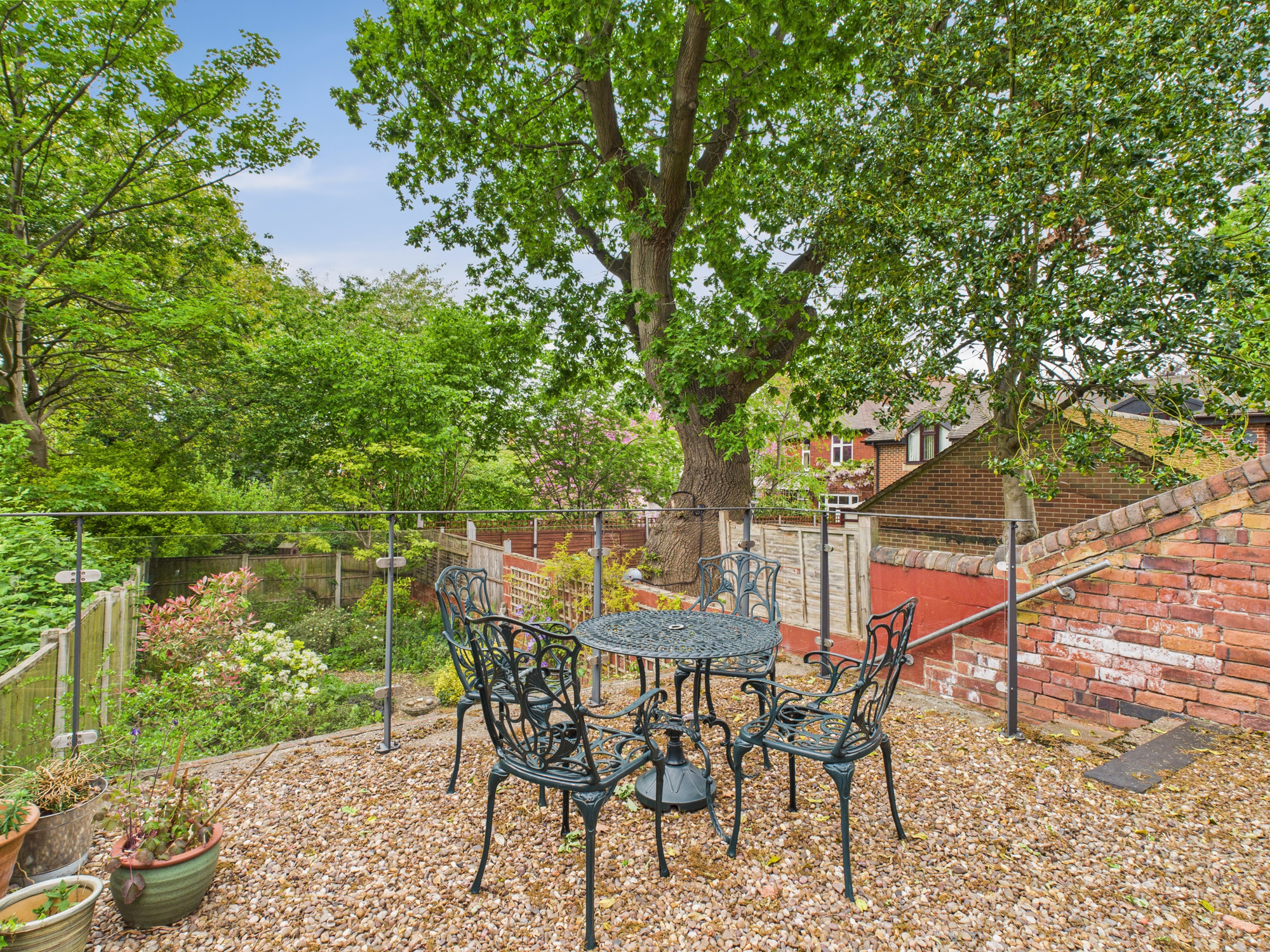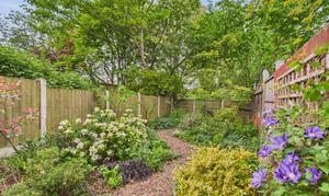 - Generous established garden with an initial elevated patio seating area