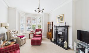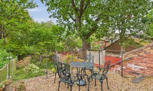 Outside, the rear garden features an elevated patio seating area with steps leading down to a good-sized, low-maintenance space with established planting. To the front, permit-parking is in operation, whilst an additional private parking space is available to the left of the house in an enclosed area.