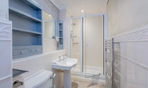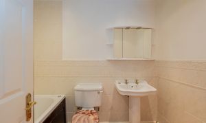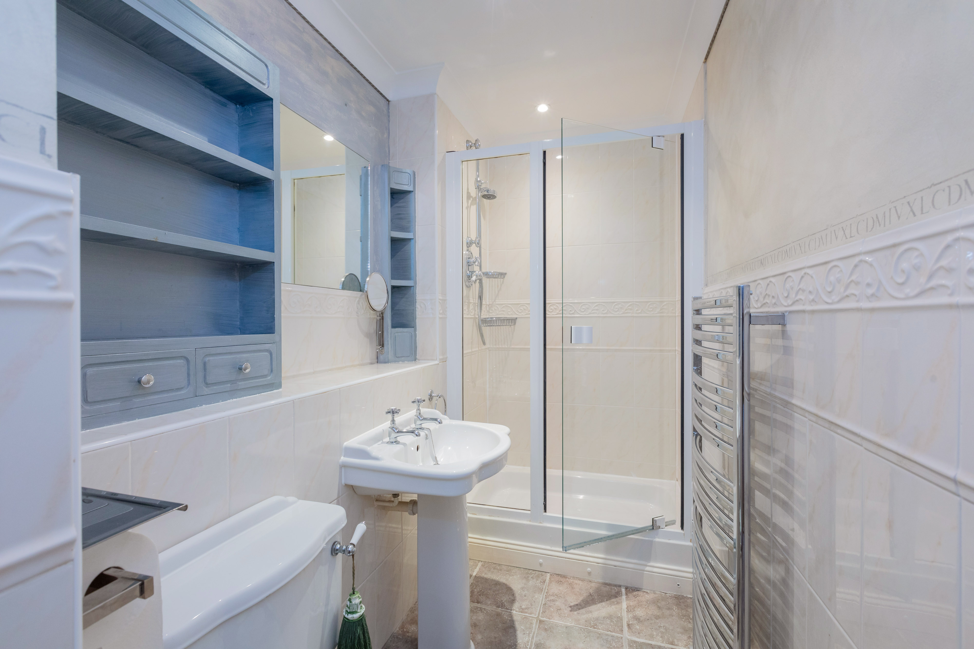 The principal bedroom benefits from an en suite shower room, while a second double bedroom is served by a well-appointed family bathroom.