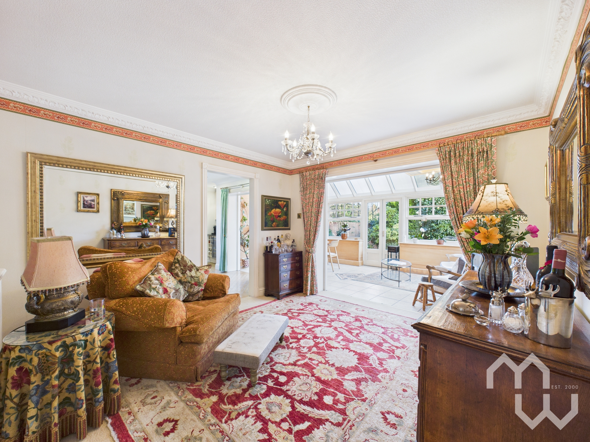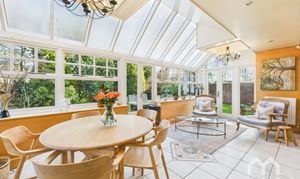 Light pours through the home, with French doors and a glazed conservatory extending the living spaces effortlessly into the garden. Classic fireplaces, elegant ceiling mouldings and carefully chosen finishes add warmth and character, while generous proportions ensure each room feels both comfortable and purposeful.