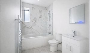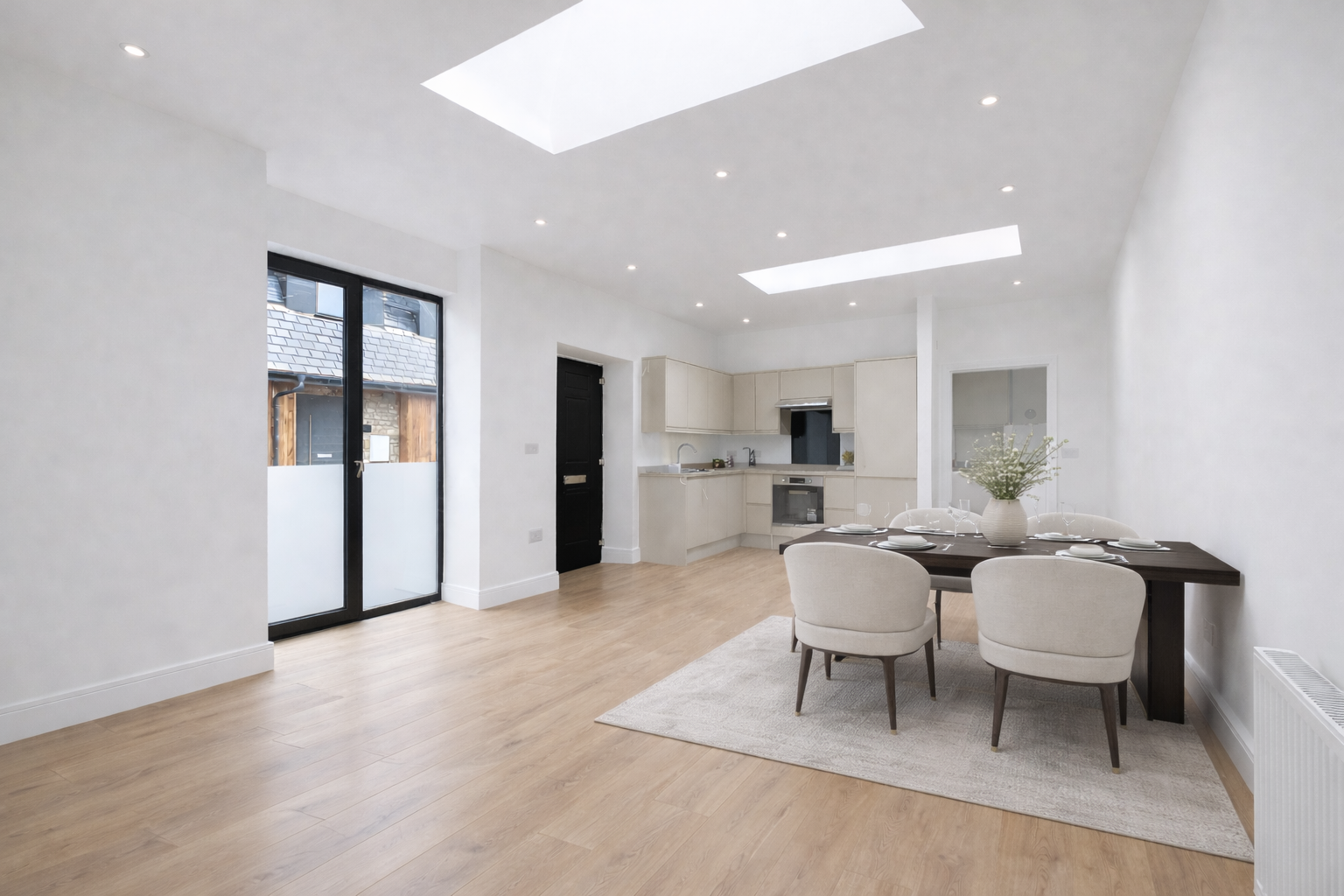 The open-plan living area forms the heart of the home, providing the perfect space to relax, entertain or work from home in comfort. A stylish, fully fitted kitchen with high-end integrated appliances sits seamlessly within the space, offering both practicality and modern design. The spacious bedroom is calm and inviting, while the sleek bathroom is finished with elegant fittings and a contemporary feel.