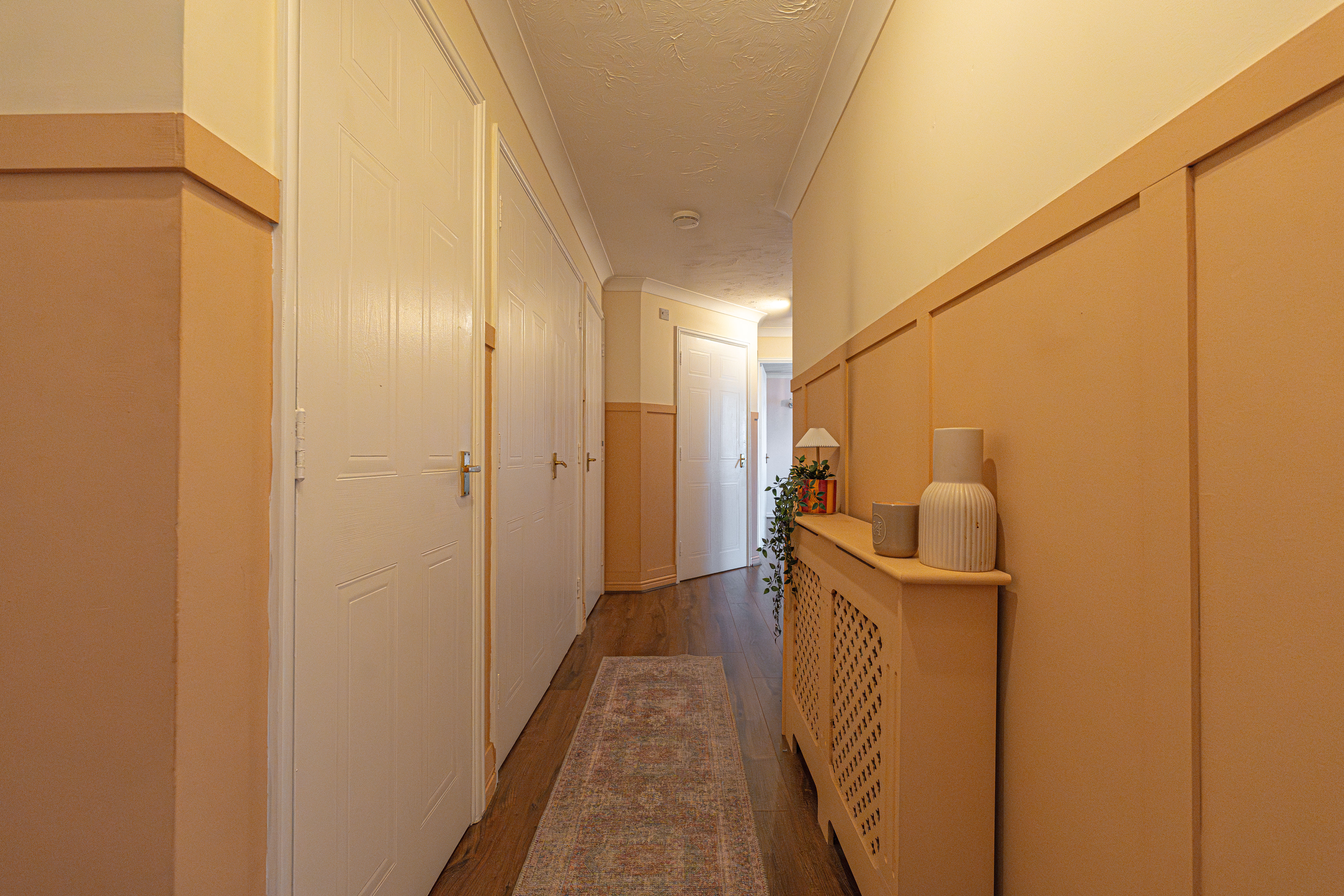 The property feature two well proportioned bedrooms which are both flooded with natural light. One of bedrooms is currently in use as the main lounge, allowing for a larger dining room and showcasing the properties incredible versatility. The second bedroom benefits from a large fitted wardrobe and a private en-suite shower room, whilst the second bathroom is accessible to all from the hallway with a bath suite and overhead shower. The hallway also features several fitted cupboards that provide residents with a considerable amount of storage space.