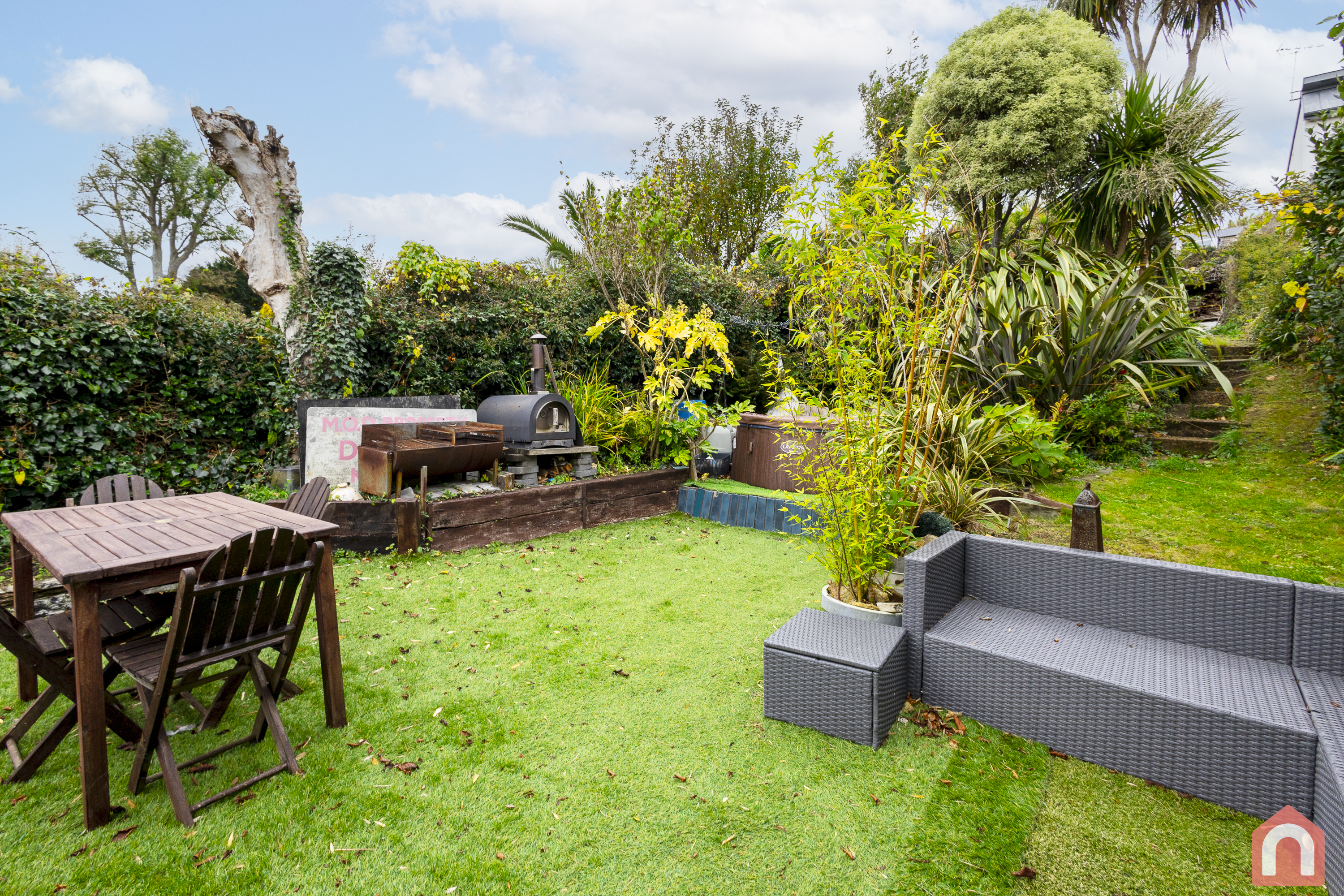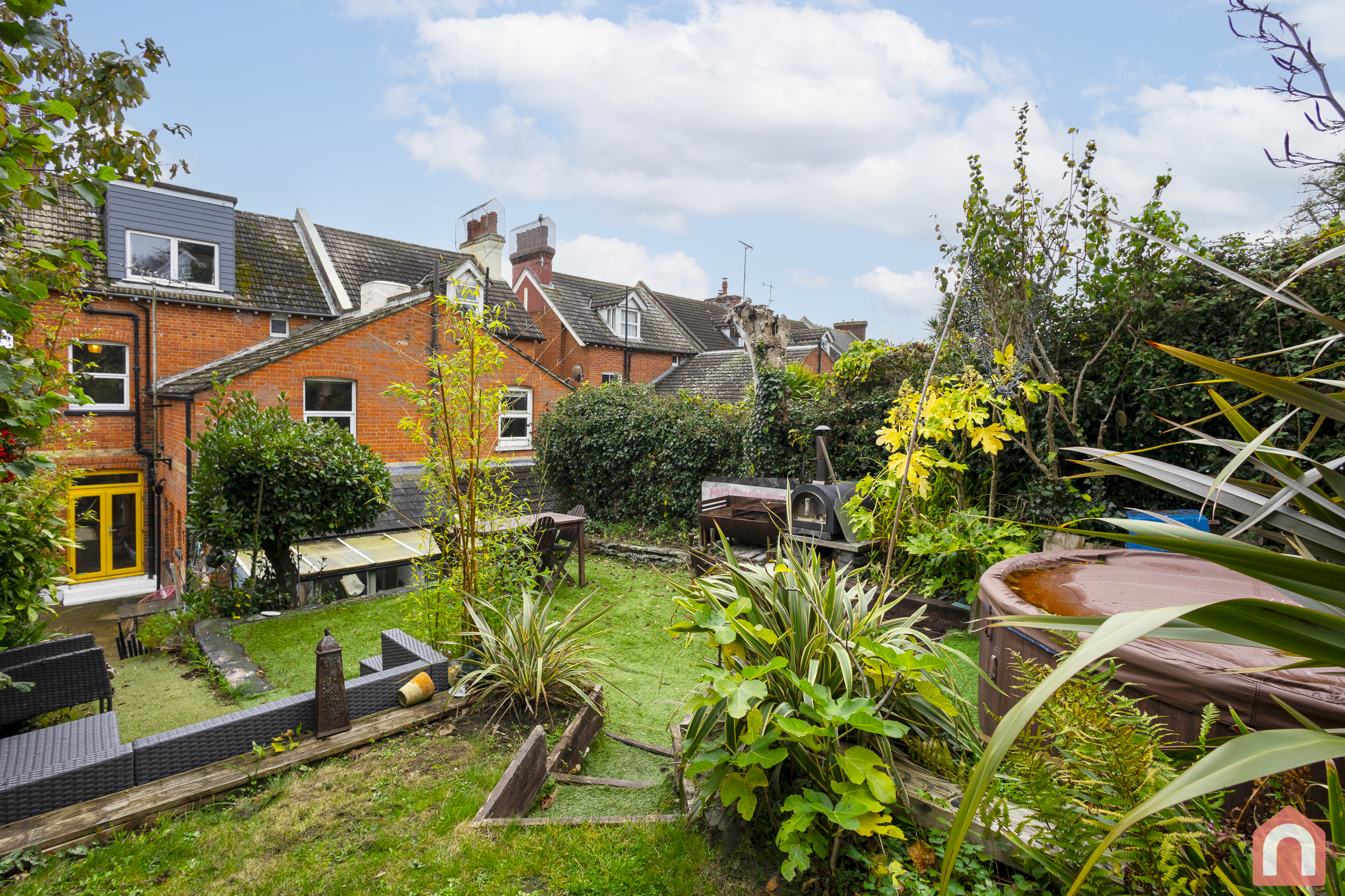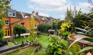 Venture outside to the tiered rear garden, complete with entertaining space for warm summer evenings. Imagine sipping cocktails with loved ones while soaking up the sun in your own private oasis.