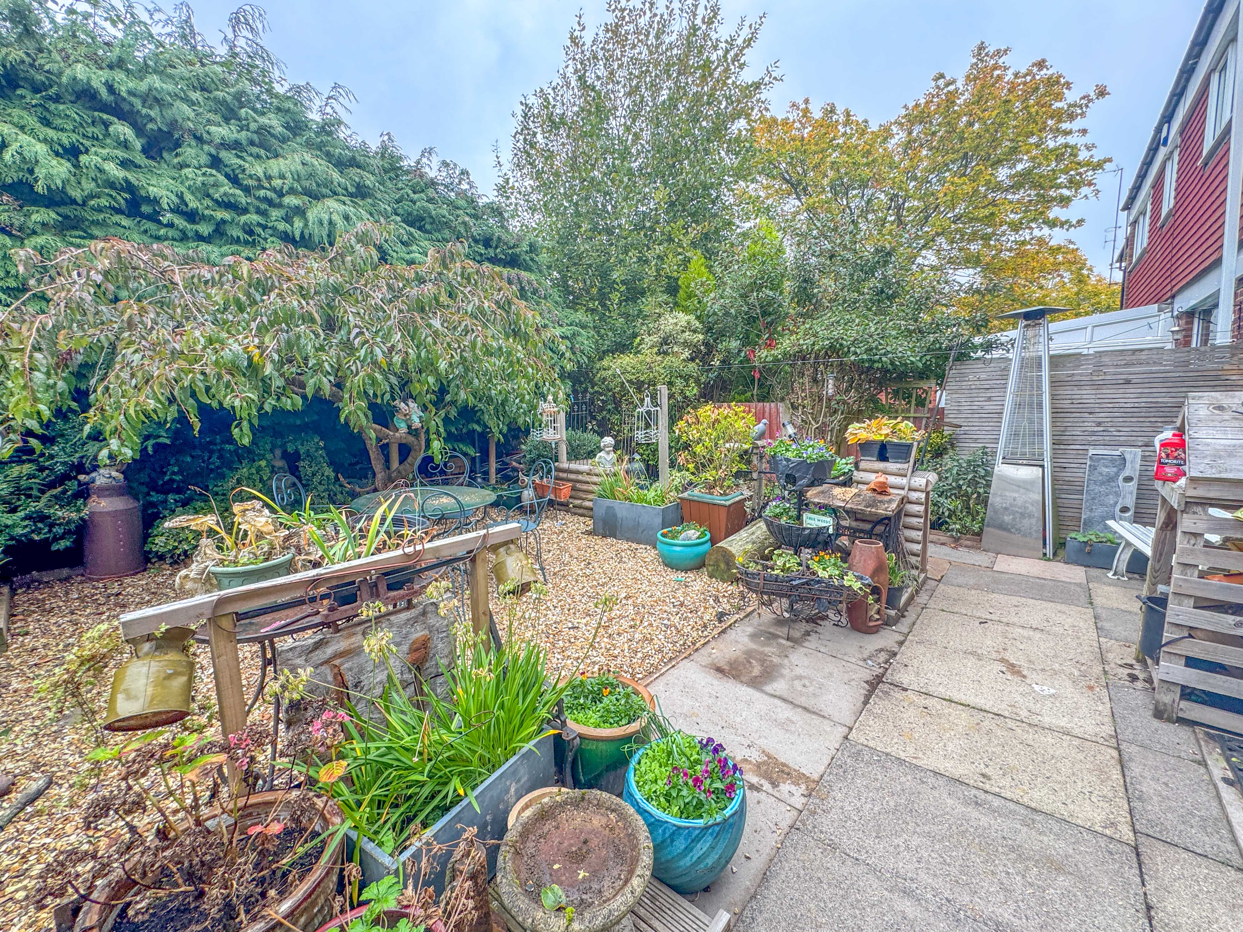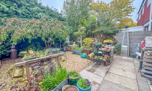 Outside, the rear garden has been designed for easy maintenance, providing a pleasant space to enjoy a quiet moment or a glass of wine on a warm summer evening.