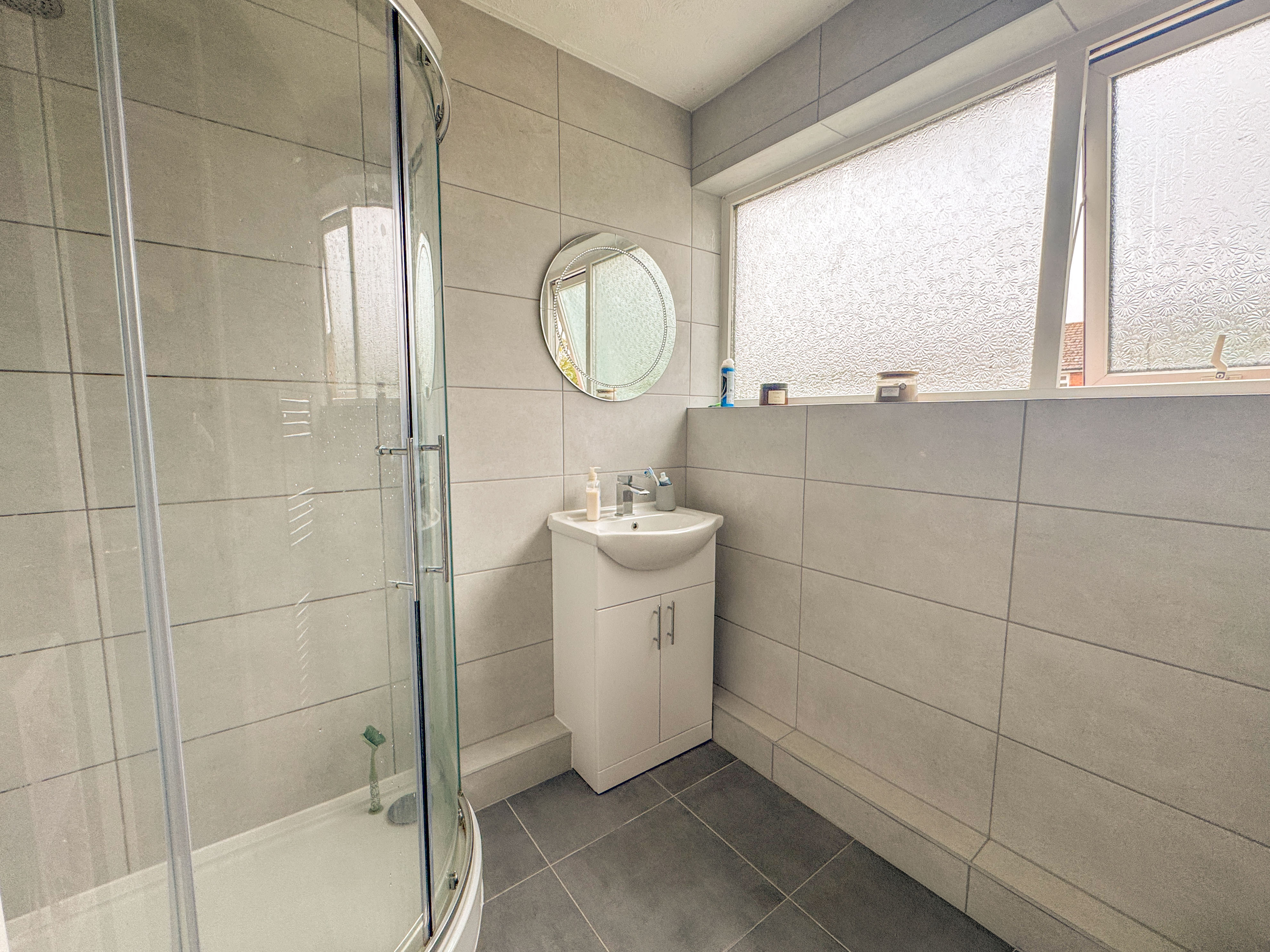 To the first floor are three well-proportioned bedrooms, each offering comfortable accommodation, along with a separate WC for convenience and a refitted shower room presented in a modern suite.