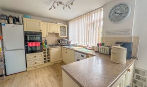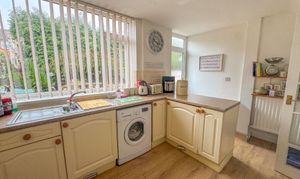 The kitchen provides a bright and practical space to prepare meals, fitted with an array of modern units and ample work surfaces.