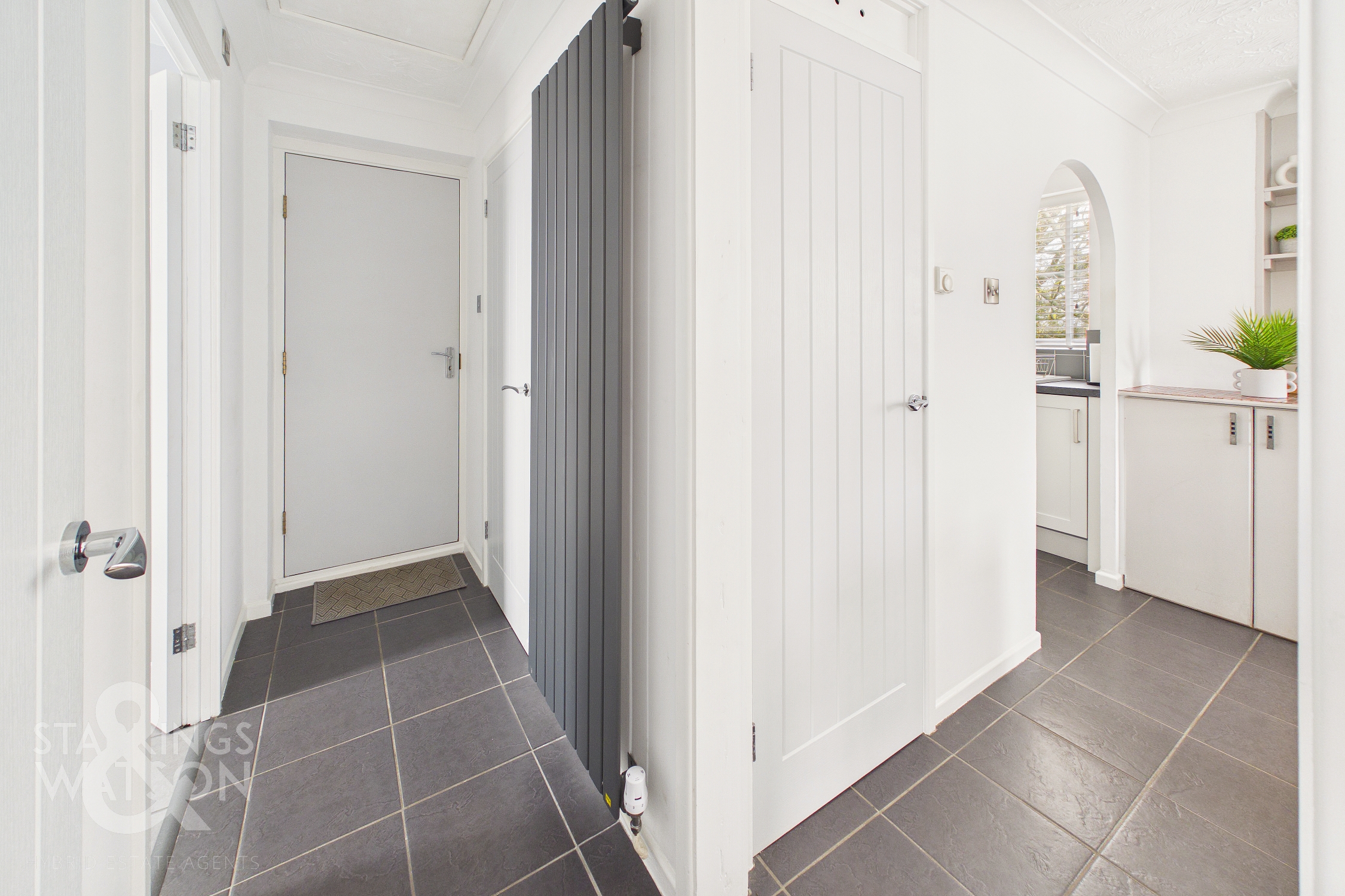 Approaching the property from the main road, a hard standing footpath takes you to the main communal entrance. Sitting adjacent, a communal residents car park can be found, with allocated parking for two vehicles and communal lawned gardens. A door takes you to the ground floor entrance where stairs rise to the first floor.