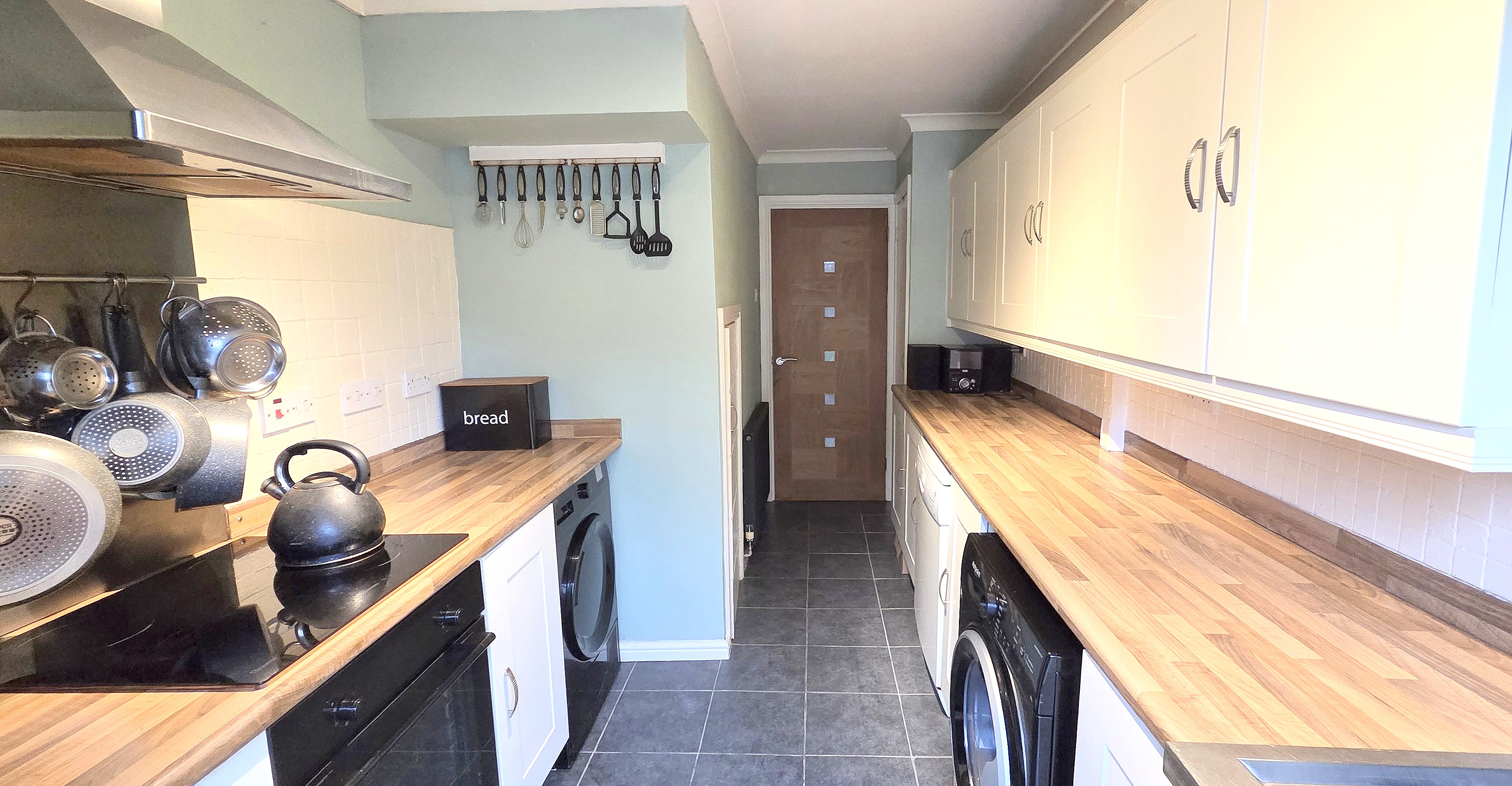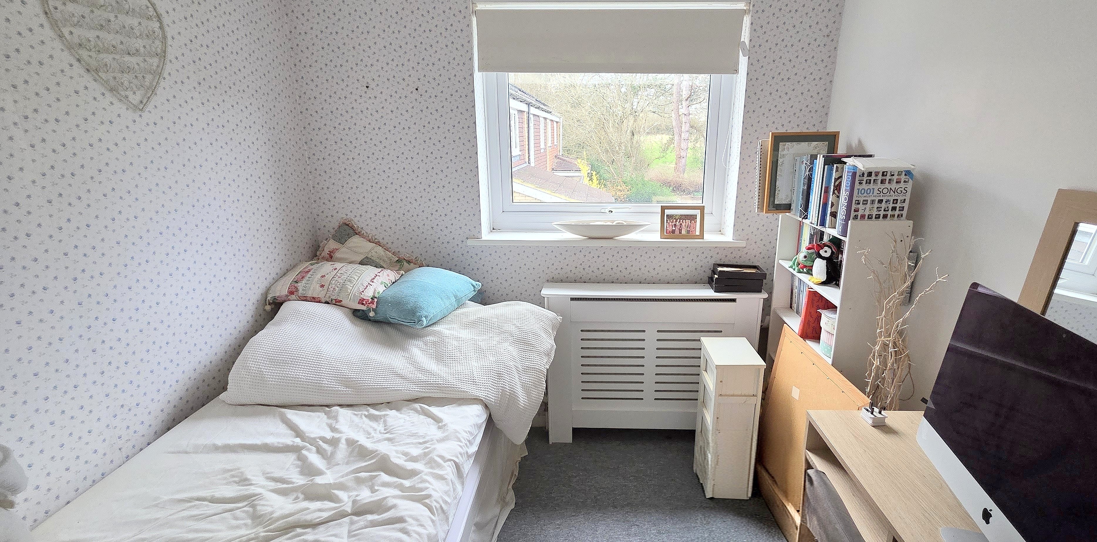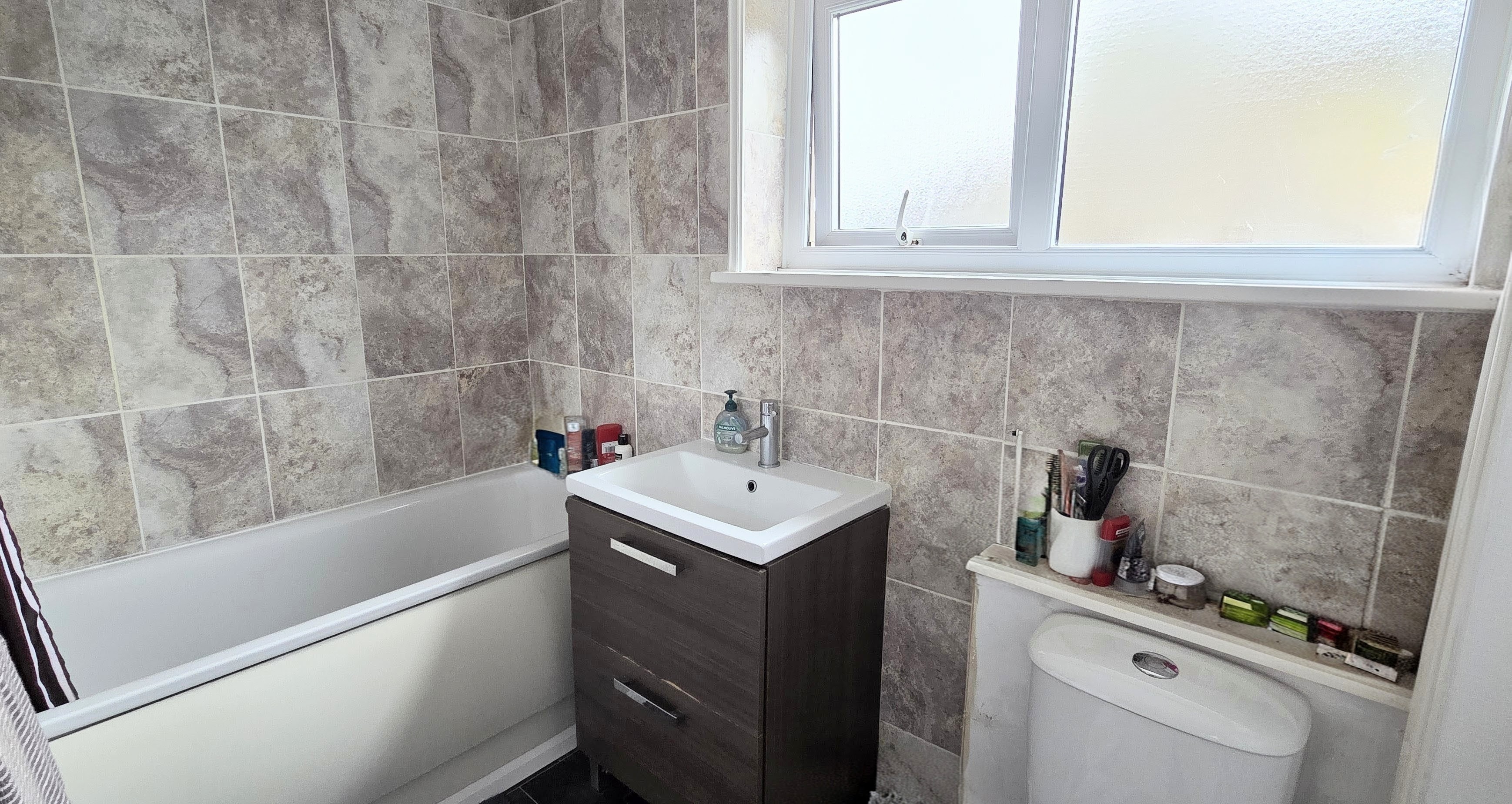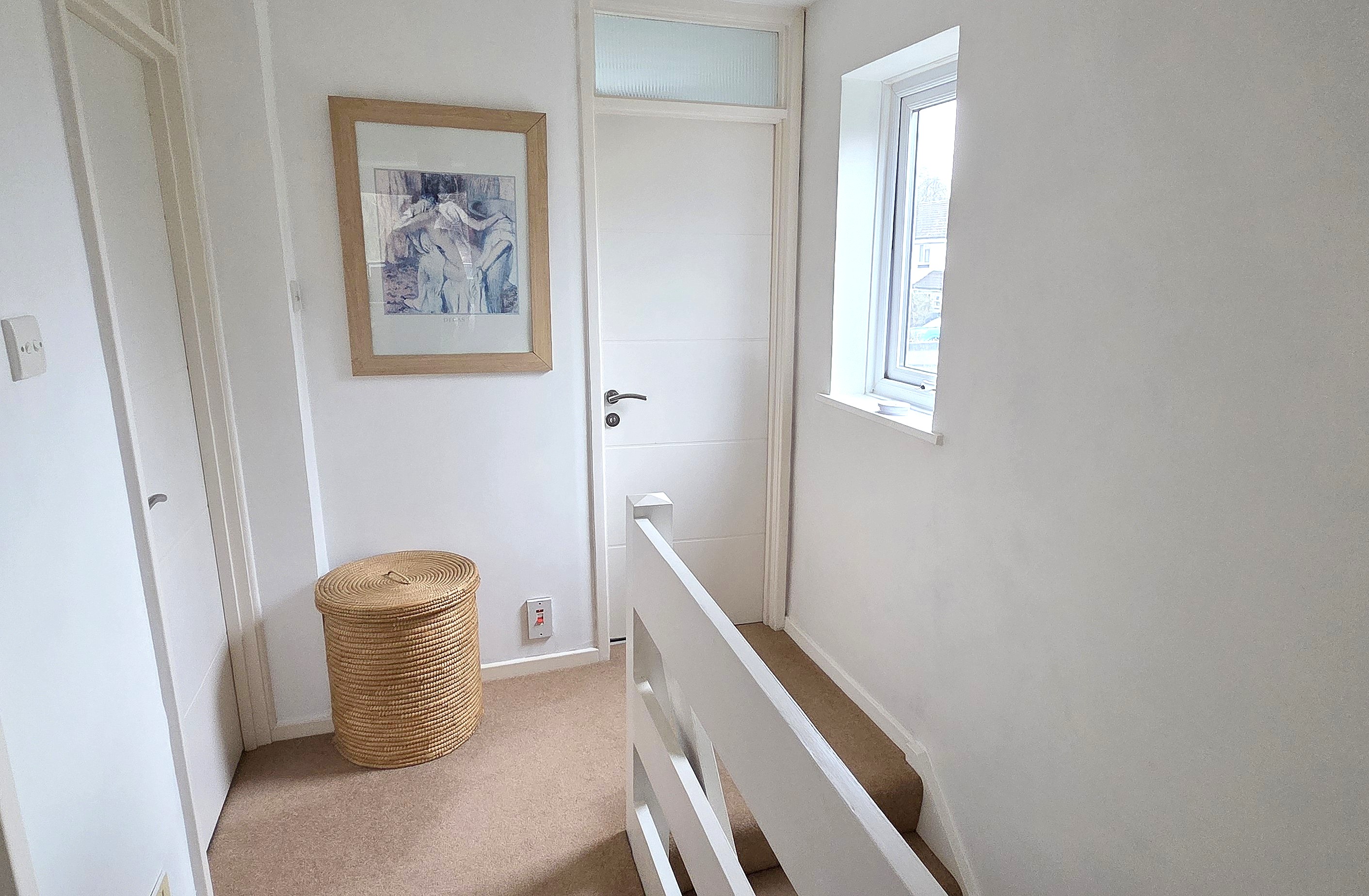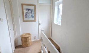 First Floor - landing with loft hatch and side window. 3 Bedrooms (2 Doubles + 1 Single). Family Bathroom re-fitted with a modern white suite. Lawned Front + Side Gardens, 30’ x 30’ North West Rear Gardens with timber decking and shaped lawn. Side gate to Garage next to the garden with up and over door.