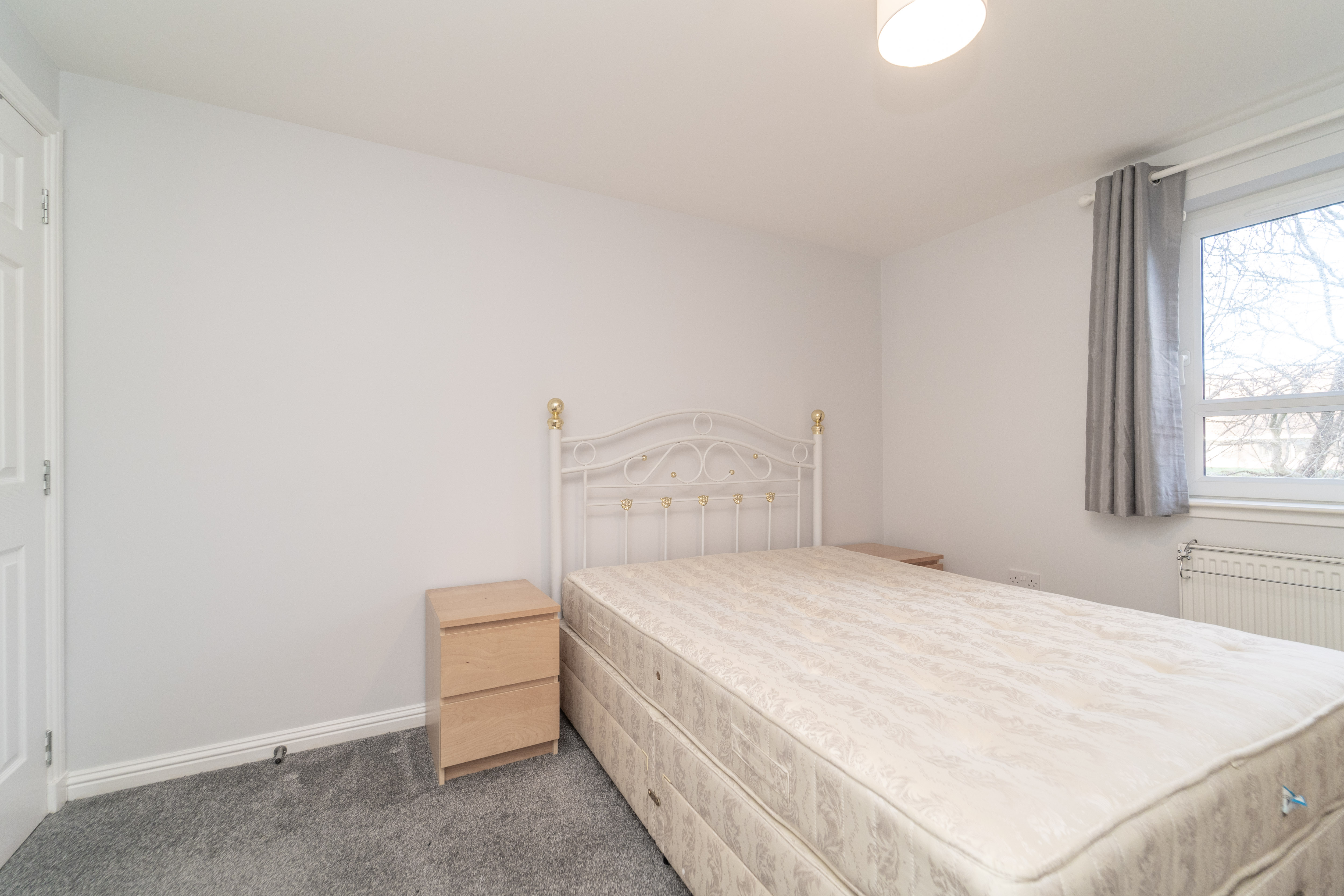 This inviting social space is decorated with carpet to the floor and light grey painted walls. A window to the front of the property allows in lots of natural light. Two ceiling lights, a smoke detector, a radiator, an intercom handset and power points are also provided.
