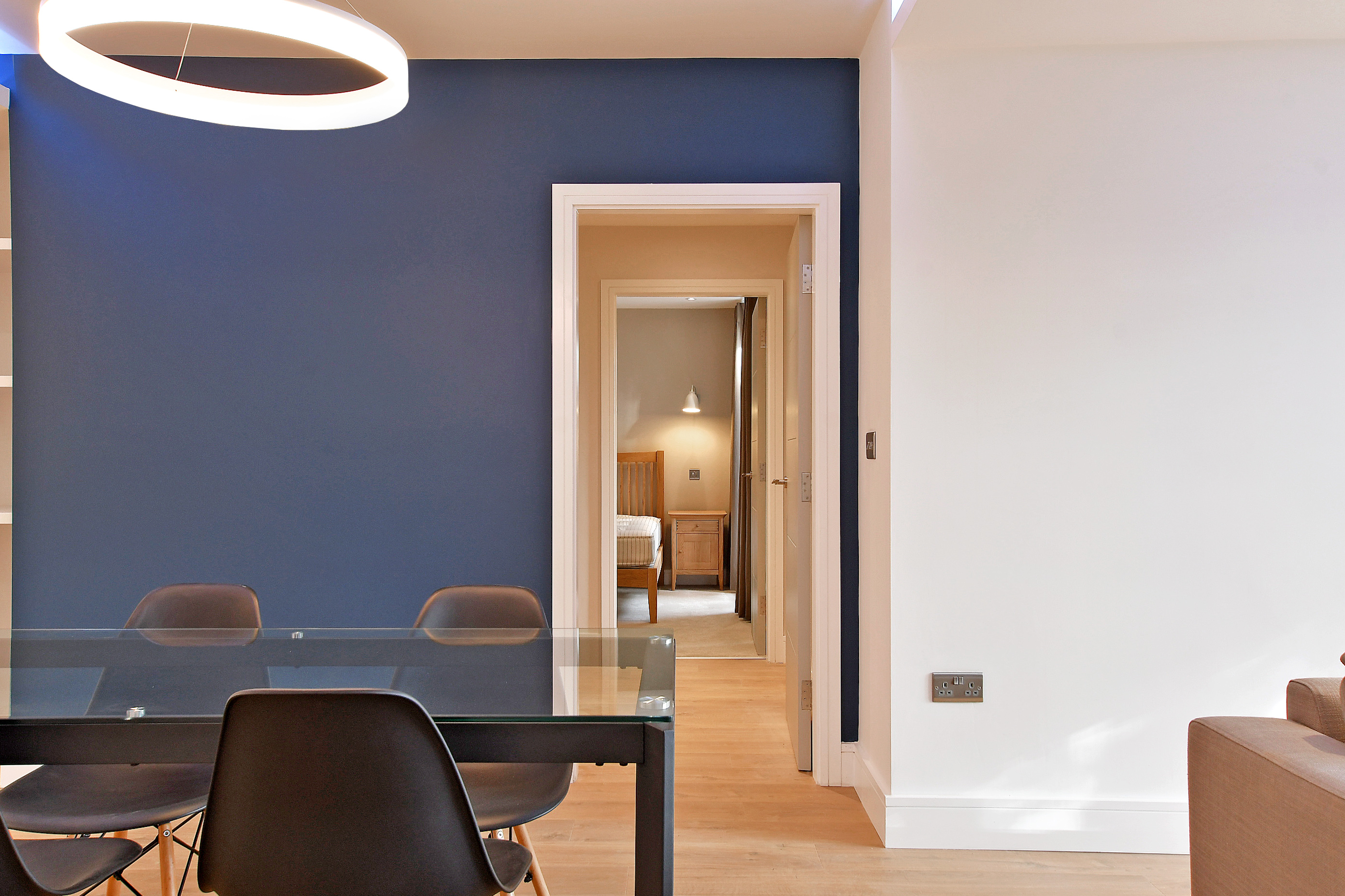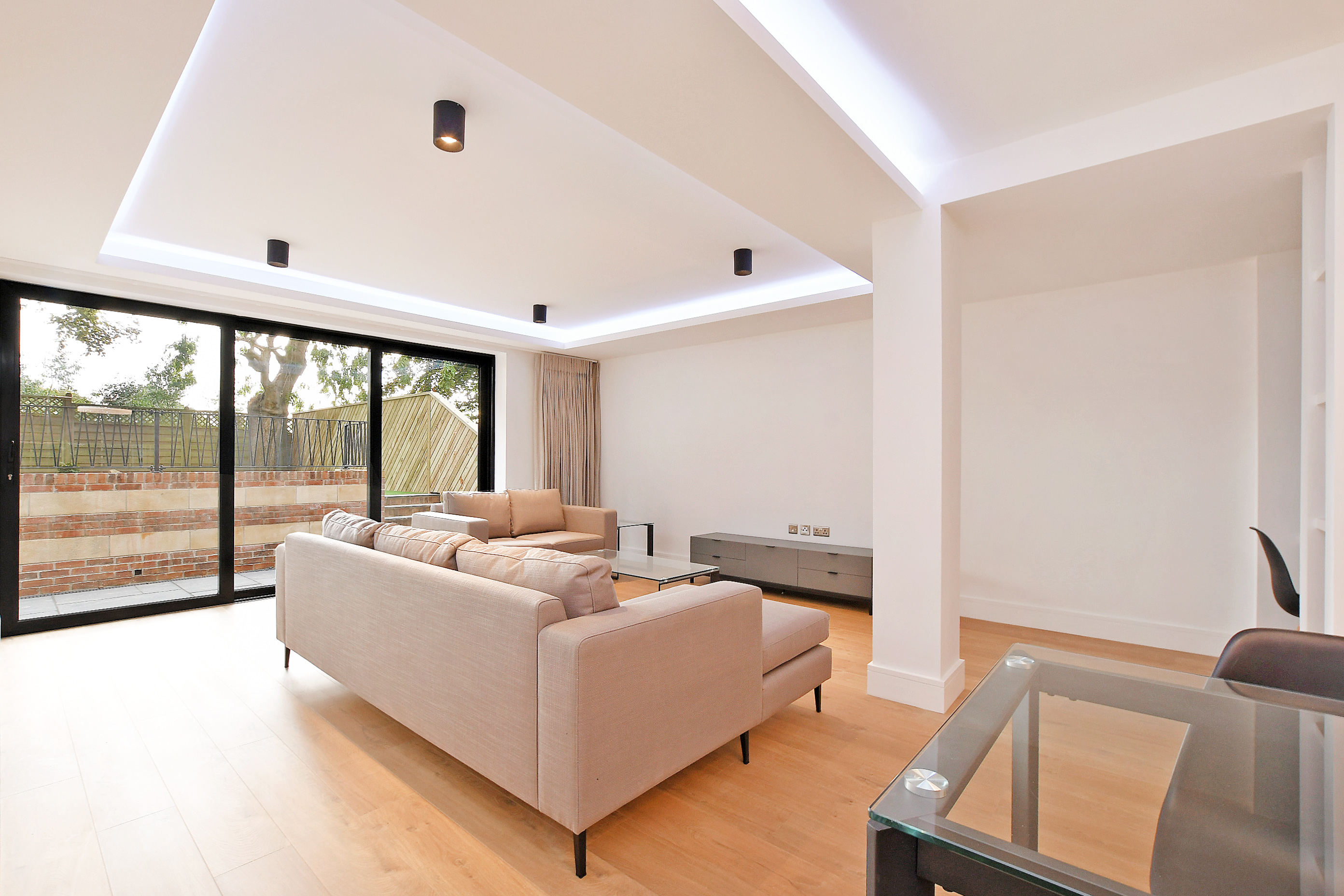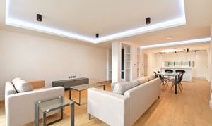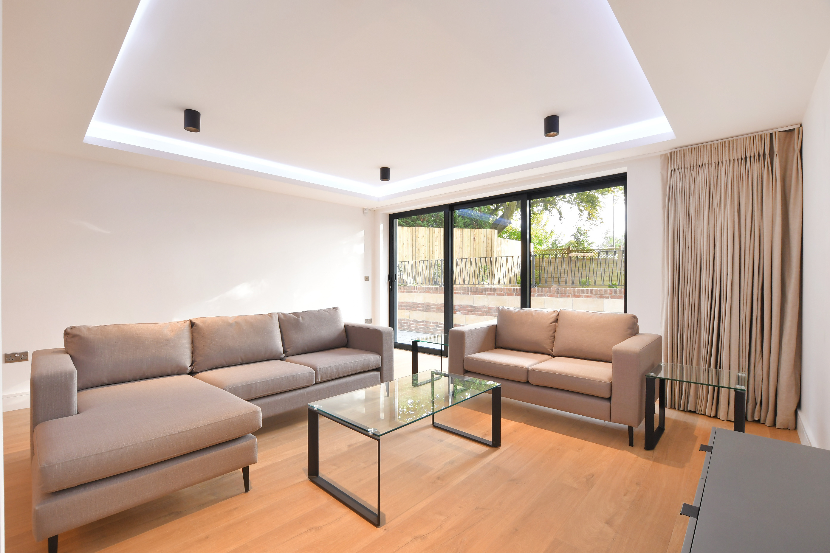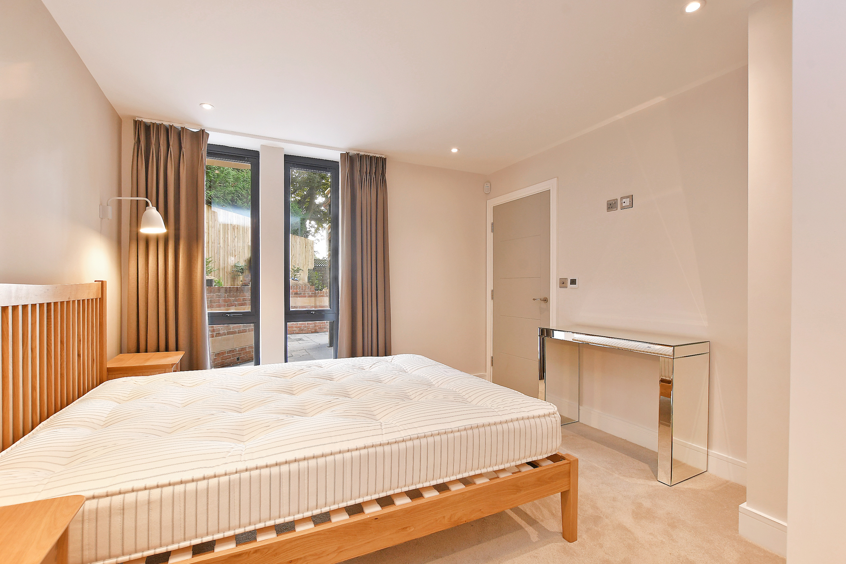 Apartment 1 Dore Lodge is a stunning, light, and airy apartment on the lower ground floor. The apartment consists of a spacious living and kitchen area which opens onto the large, low-maintenance, private garden. The large master bedroom offers a dressing area and a fully tiled en suite bathroom. The property has a second double bedroom, which also showcases the same soft carpet and sleek style fitted wardrobes featured in the master bedroom. Apartment 1 has a fully tiled family bathroom, ample storage space and a utility room fitted with a washing machine and tumble dryer. The modern Karl Benz kitchen is furnished with top-spec integrated appliances, such as AEG ovens, a warming drawer, fridge, freezer, dishwasher and Quooker instant hot water tap. Apartment 1 has been decorated with the highest quality furnishings, provided by high-end retailers.