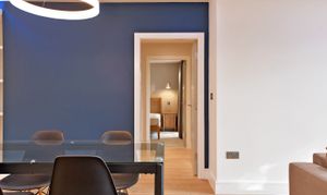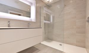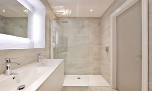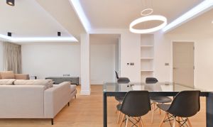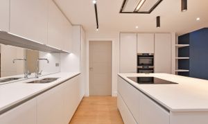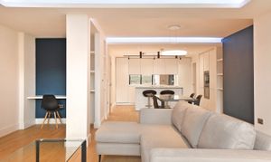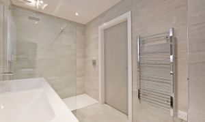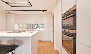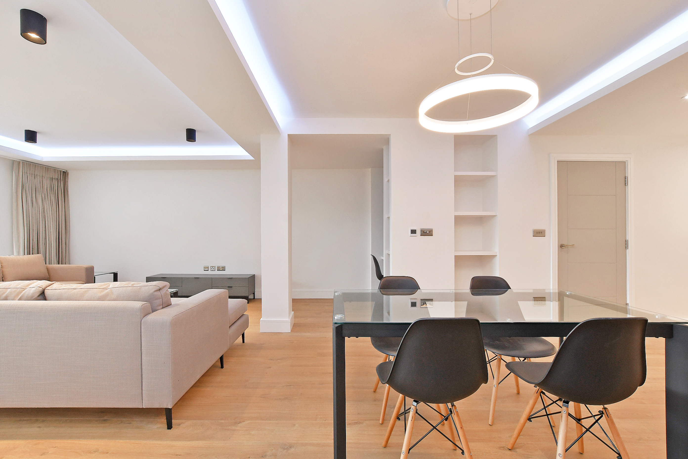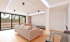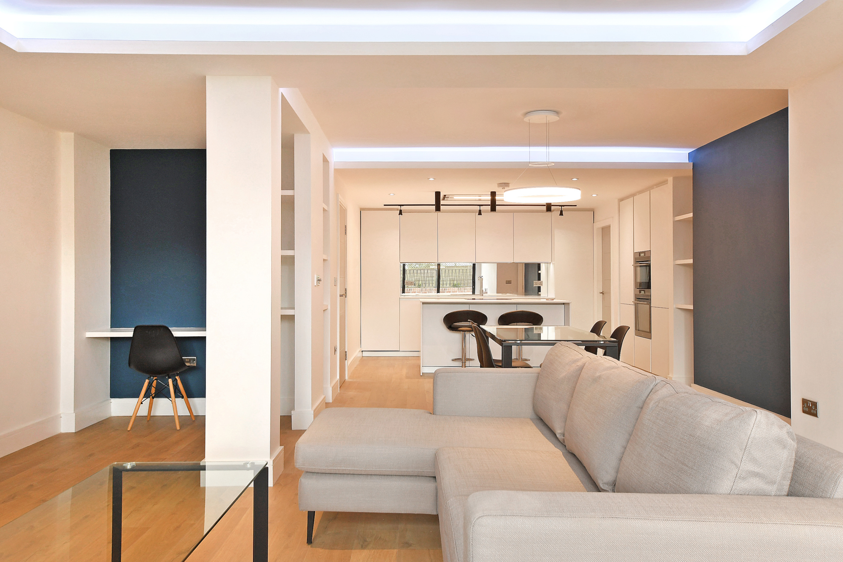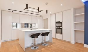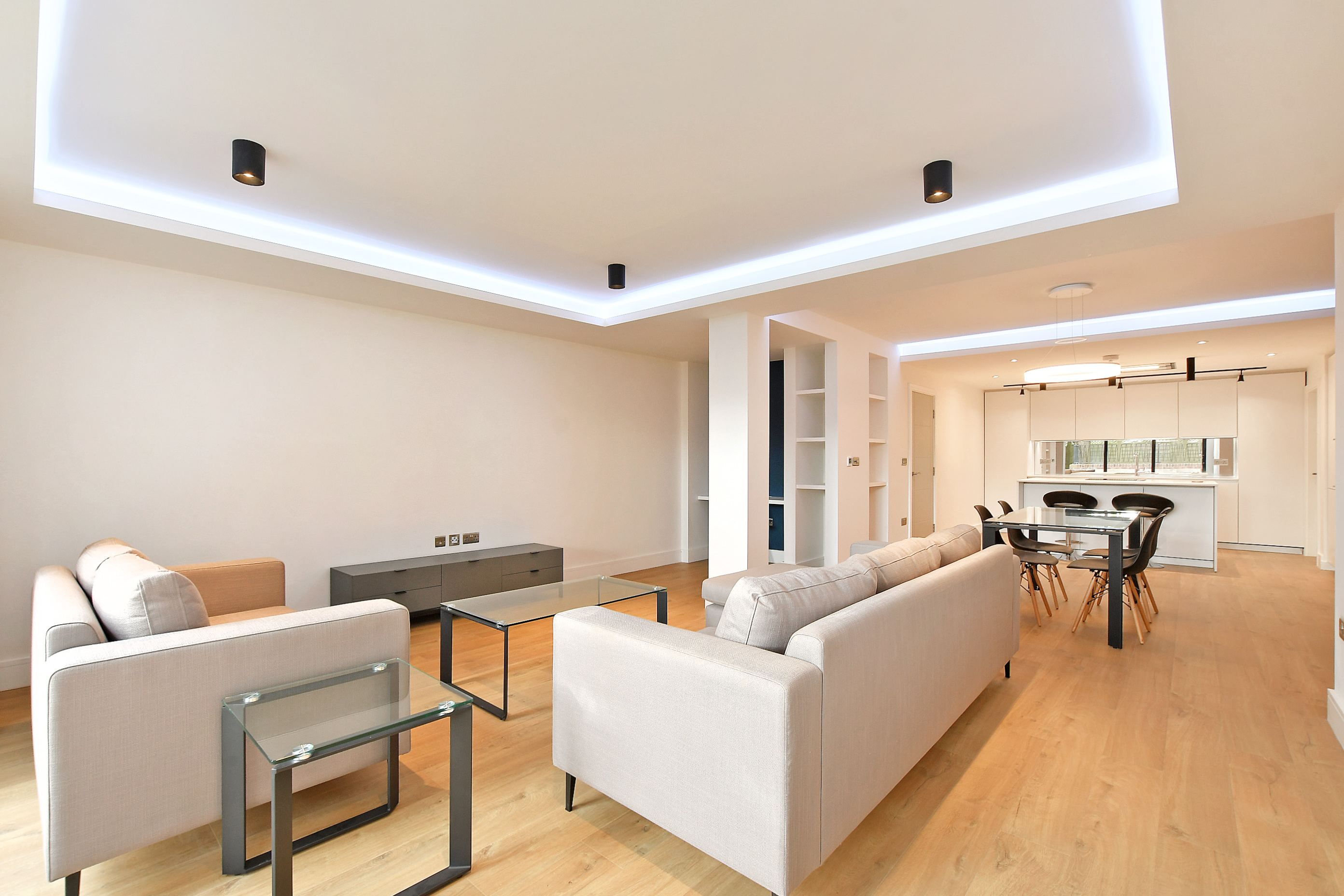 Apartment 1 Dore Lodge is a stunning, light, and airy apartment on the lower ground floor. The apartment consists of a spacious living and kitchen area which opens onto the large, low-maintenance, private garden. The large master bedroom offers a dressing area and a fully tiled en suite bathroom. The property has a second double bedroom, which also showcases the same soft carpet and sleek style fitted wardrobes featured in the master bedroom. Apartment 1 has a fully tiled family bathroom, ample storage space and a utility room fitted with a washing machine and tumble dryer. The modern Karl Benz kitchen is furnished with top-spec integrated appliances, such as AEG ovens, a warming drawer, fridge, freezer, dishwasher and Quooker instant hot water tap. Apartment 1 has been decorated with the highest quality furnishings, provided by high-end retailers.