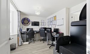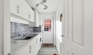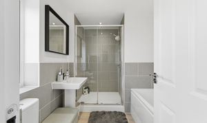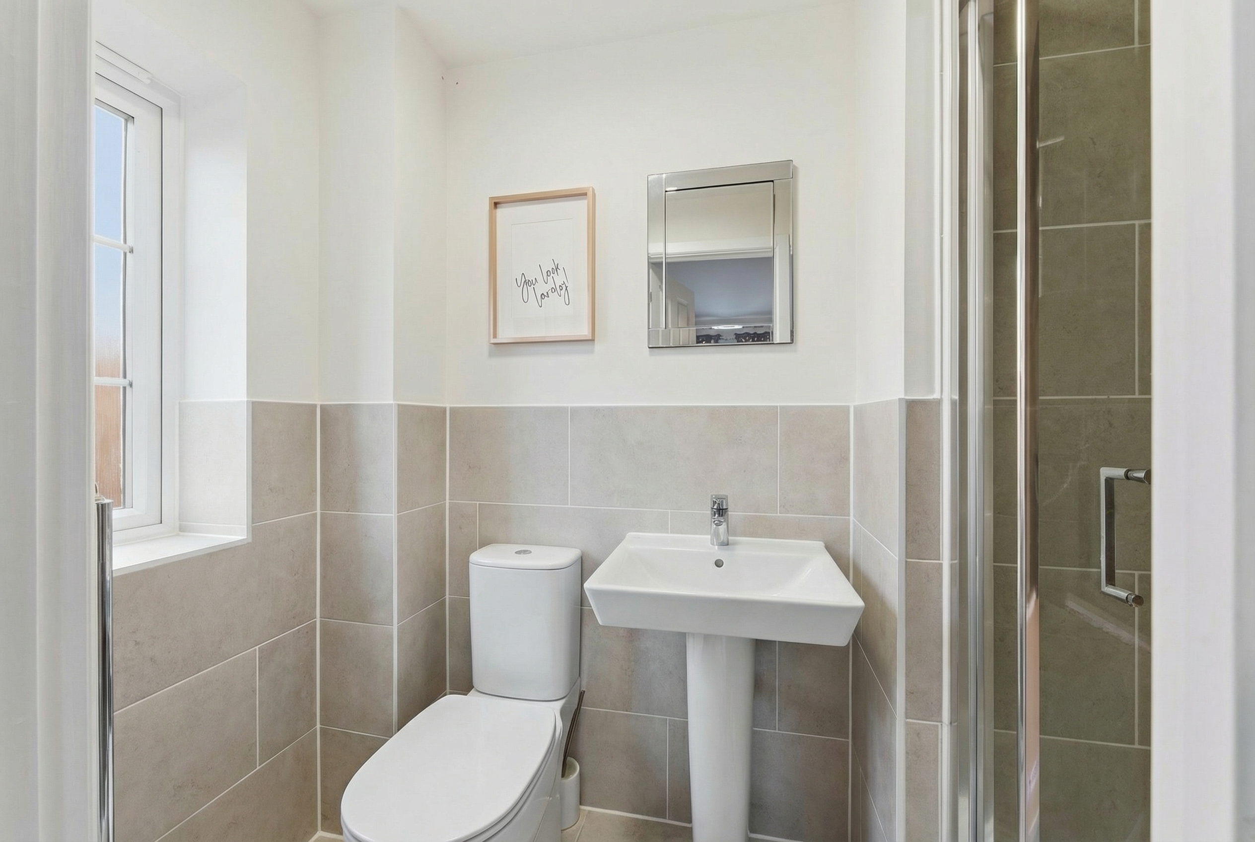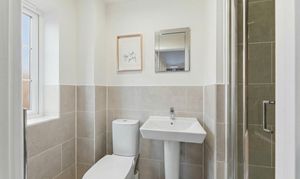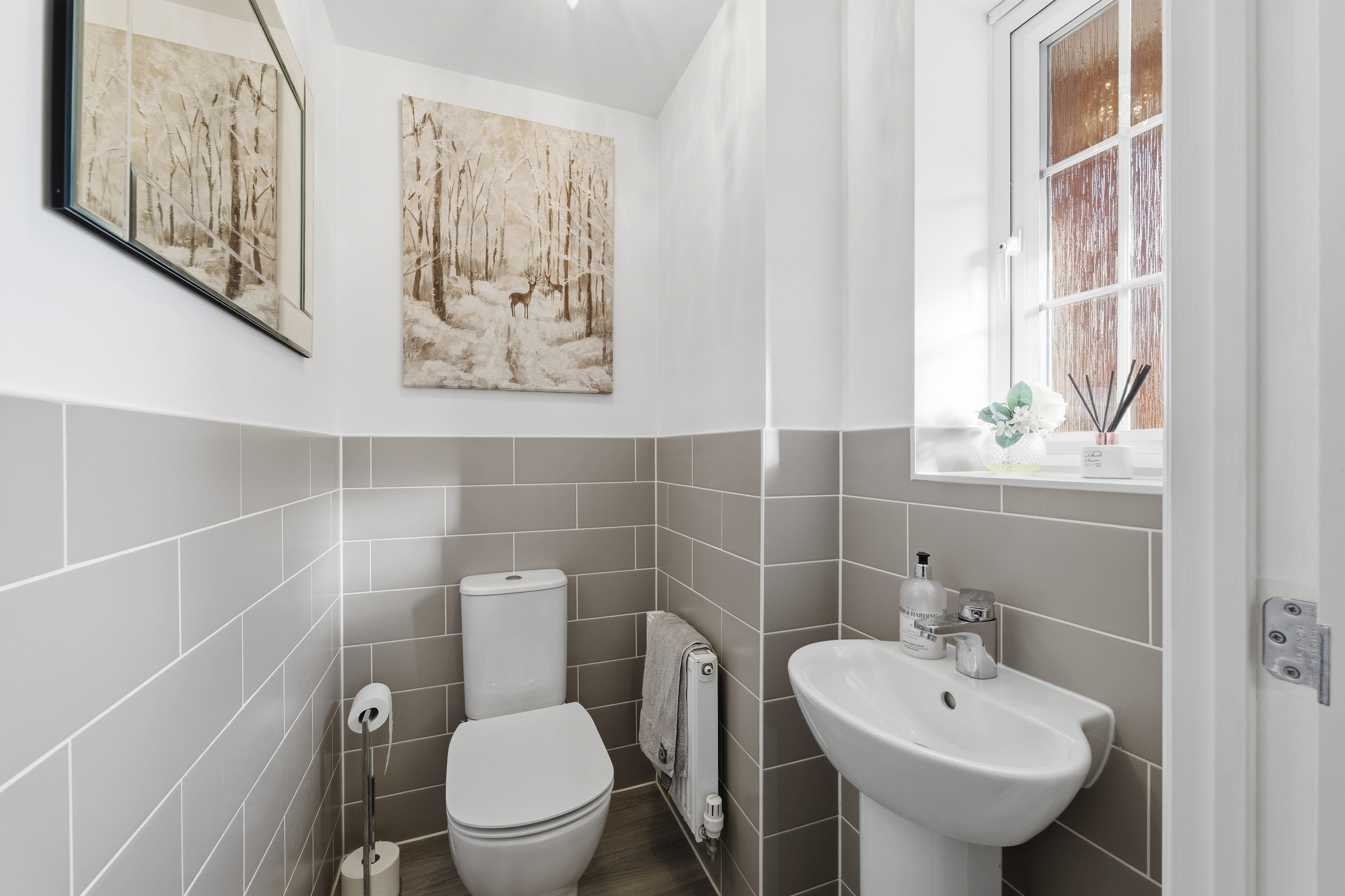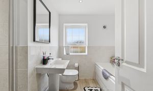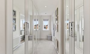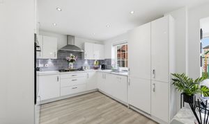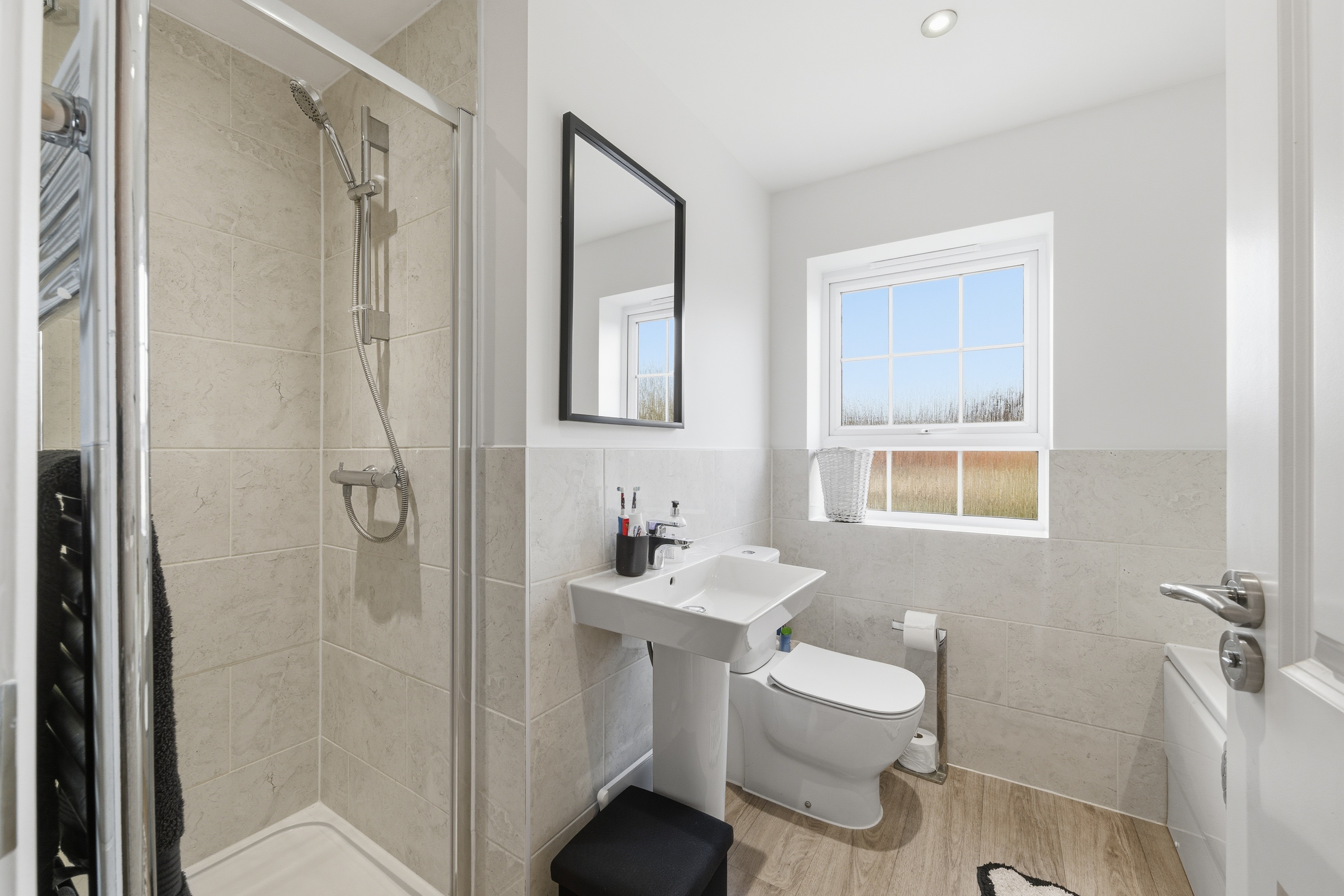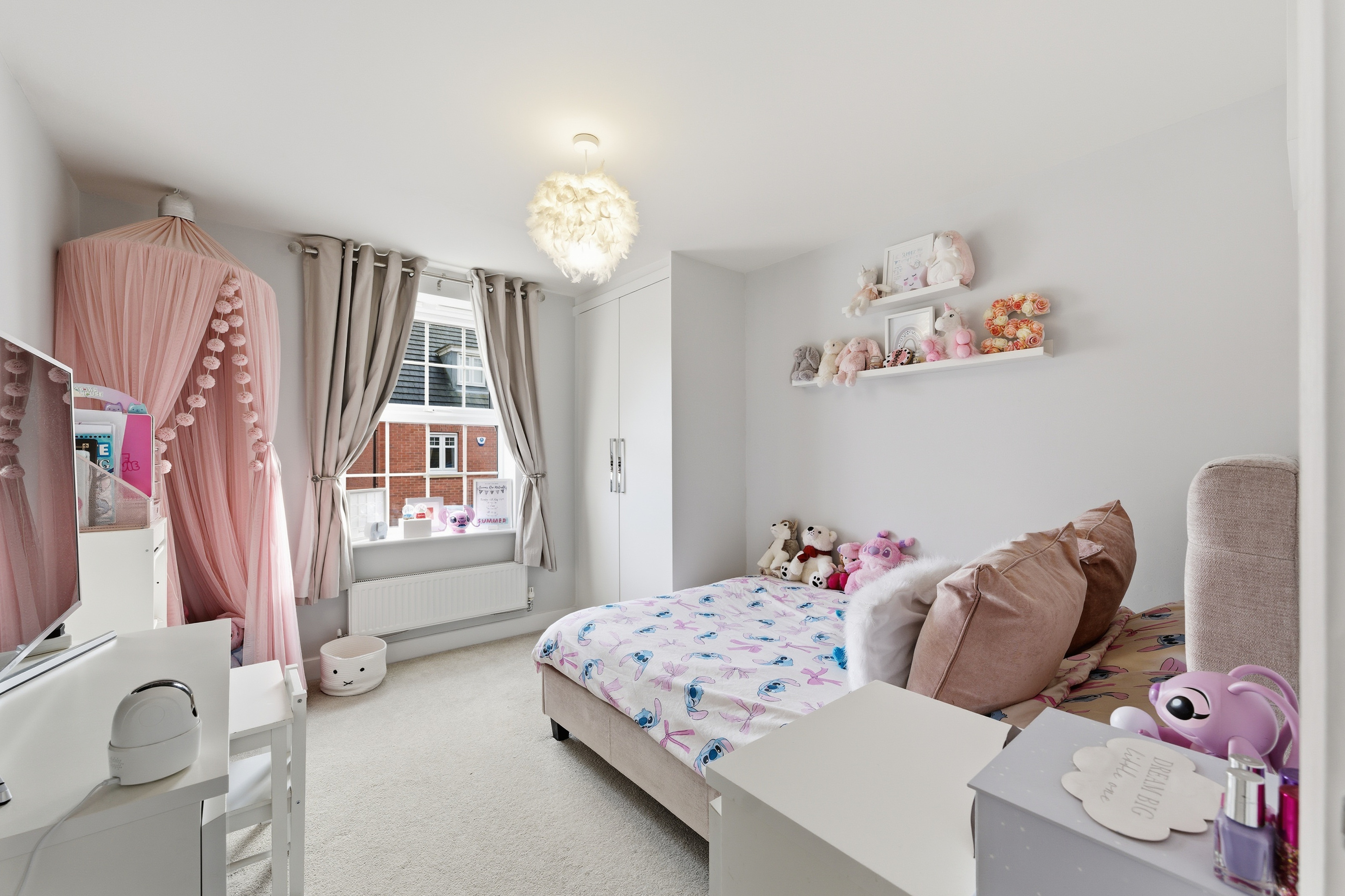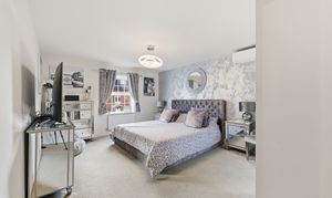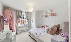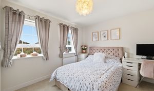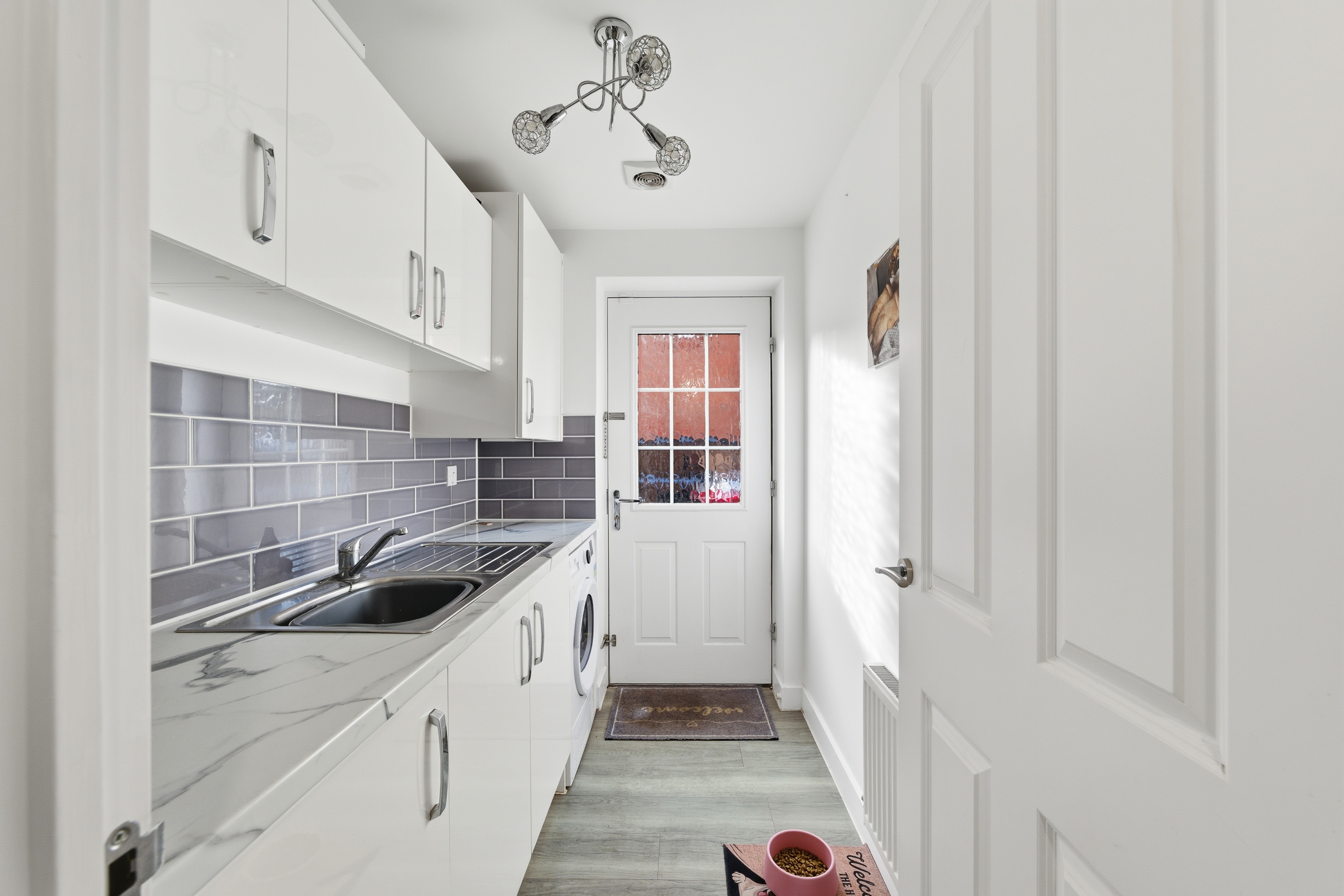 Inside, the house is finished to a high standard with an emphasis on natural light and contemporary style throughout. The heart of the home is a stunning open-plan kitchen and dining area, complete with high-gloss cabinetry, integrated appliances and stylish tiled splahbacks. Large windows and French doors flood the space with light, creating an inviting environment for family gatherings and entertaining. The living areas are generously proportioned, featuring plush carpeting, modern lighting fixtures and sophisticated decor. A dedicated home office is perfect for remote working or study. All bedrooms offer fitted wardrobes, with the master having a fantastic dressing area and air conditioning. The principal bathroom and main en-suite comprise four piece suites including a shower and bath and there is a second en-suite with shower. Additional benefits include a modern utility room with integrated appliances and convenient gated garden access.
