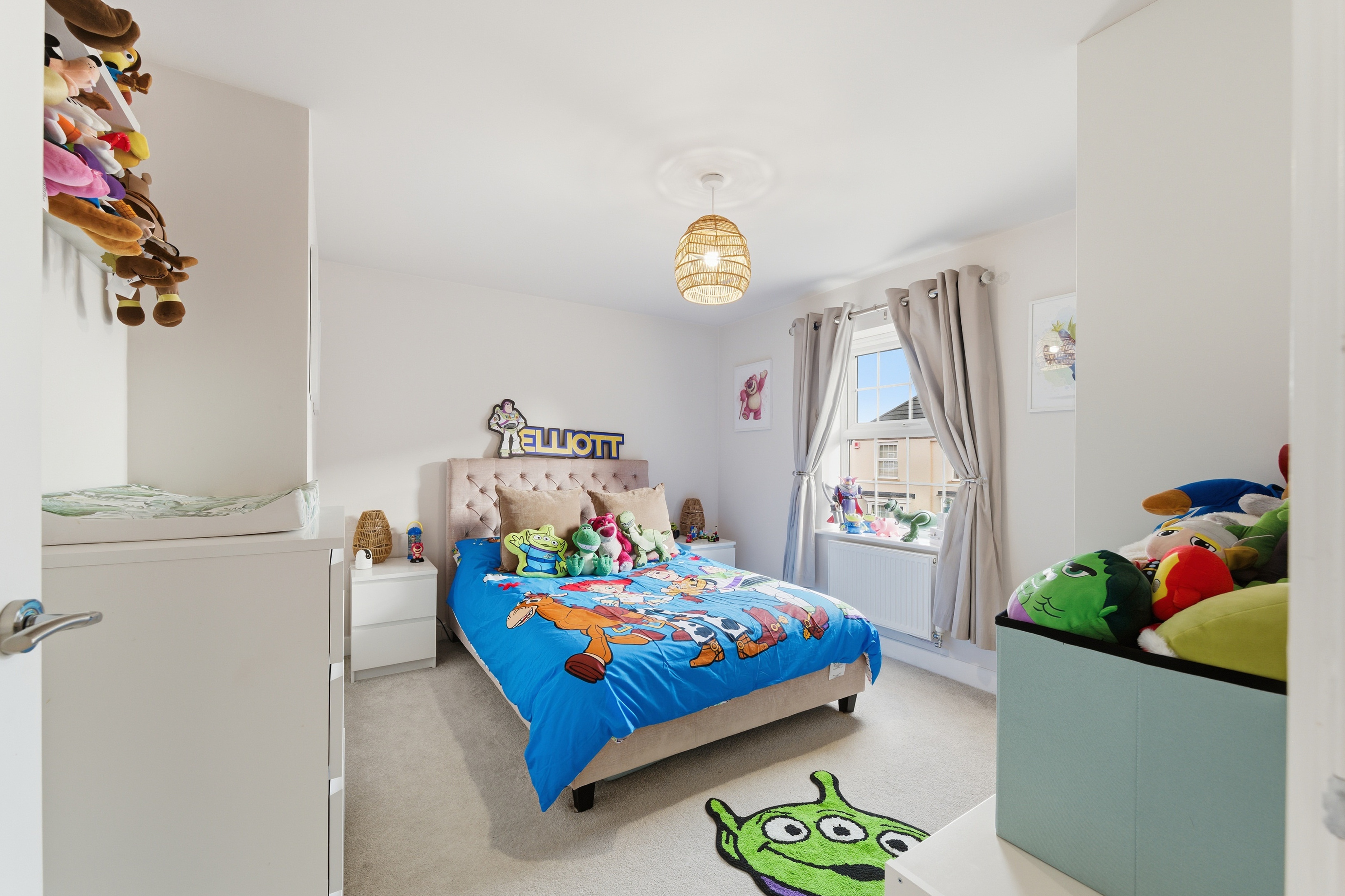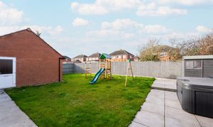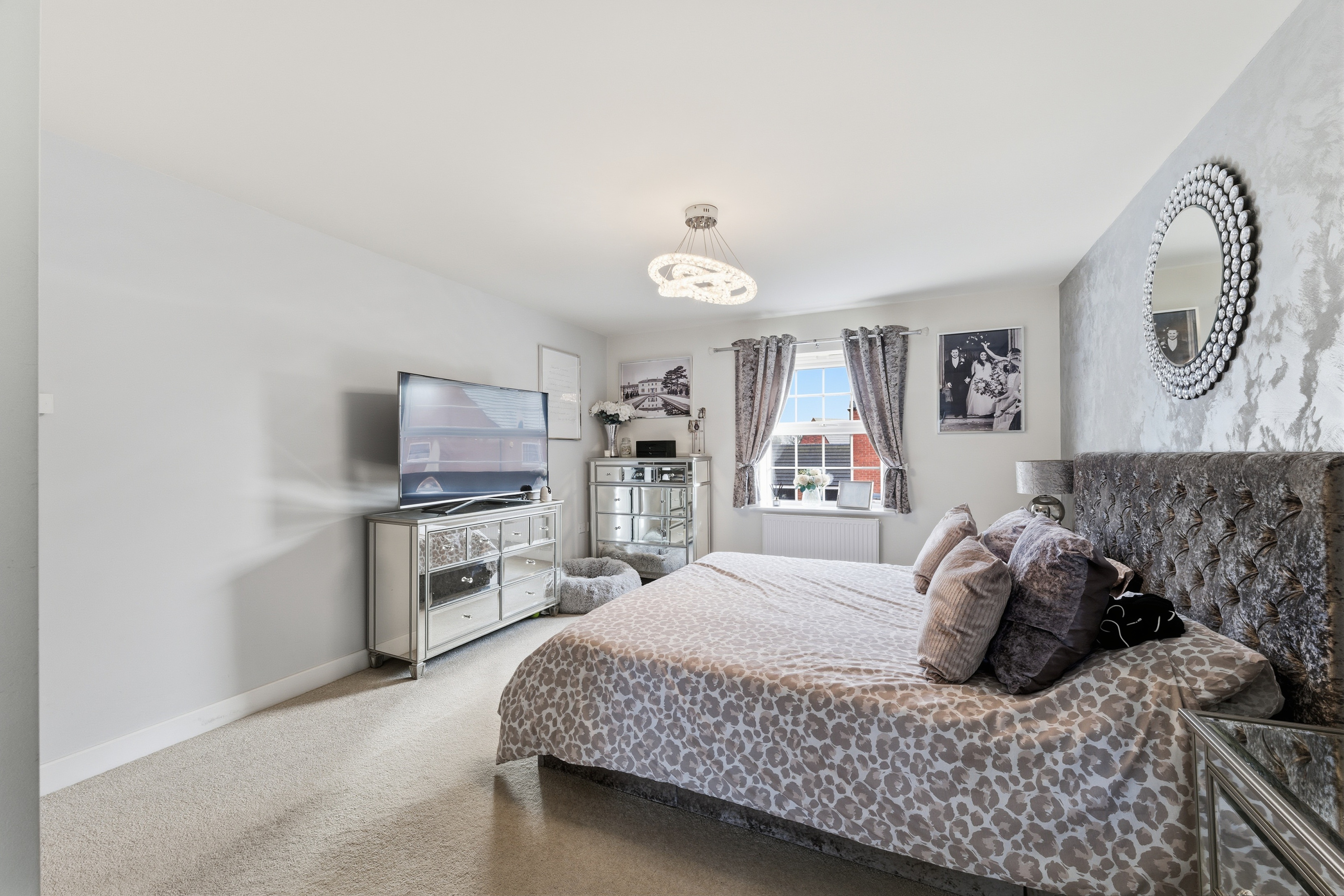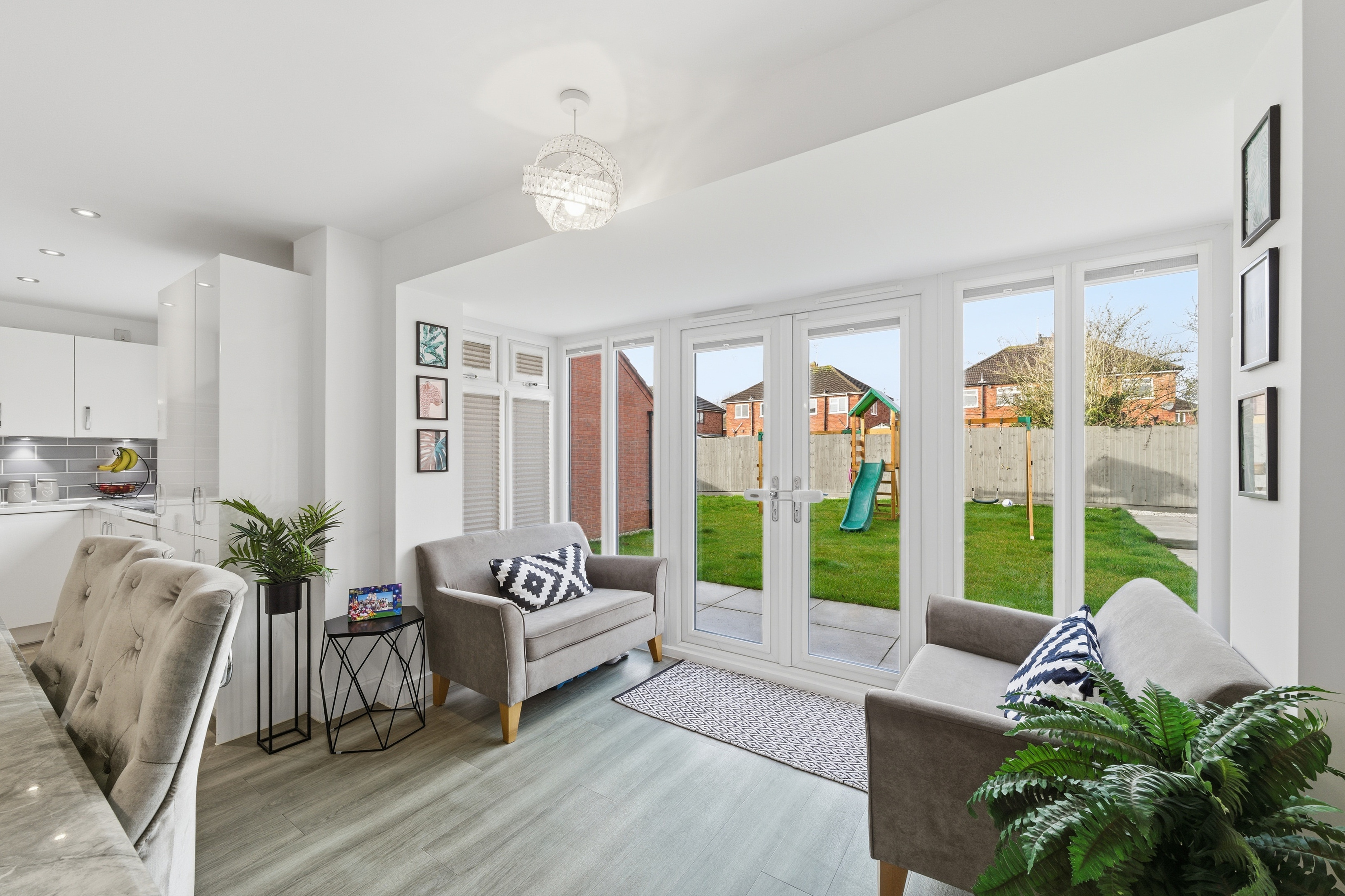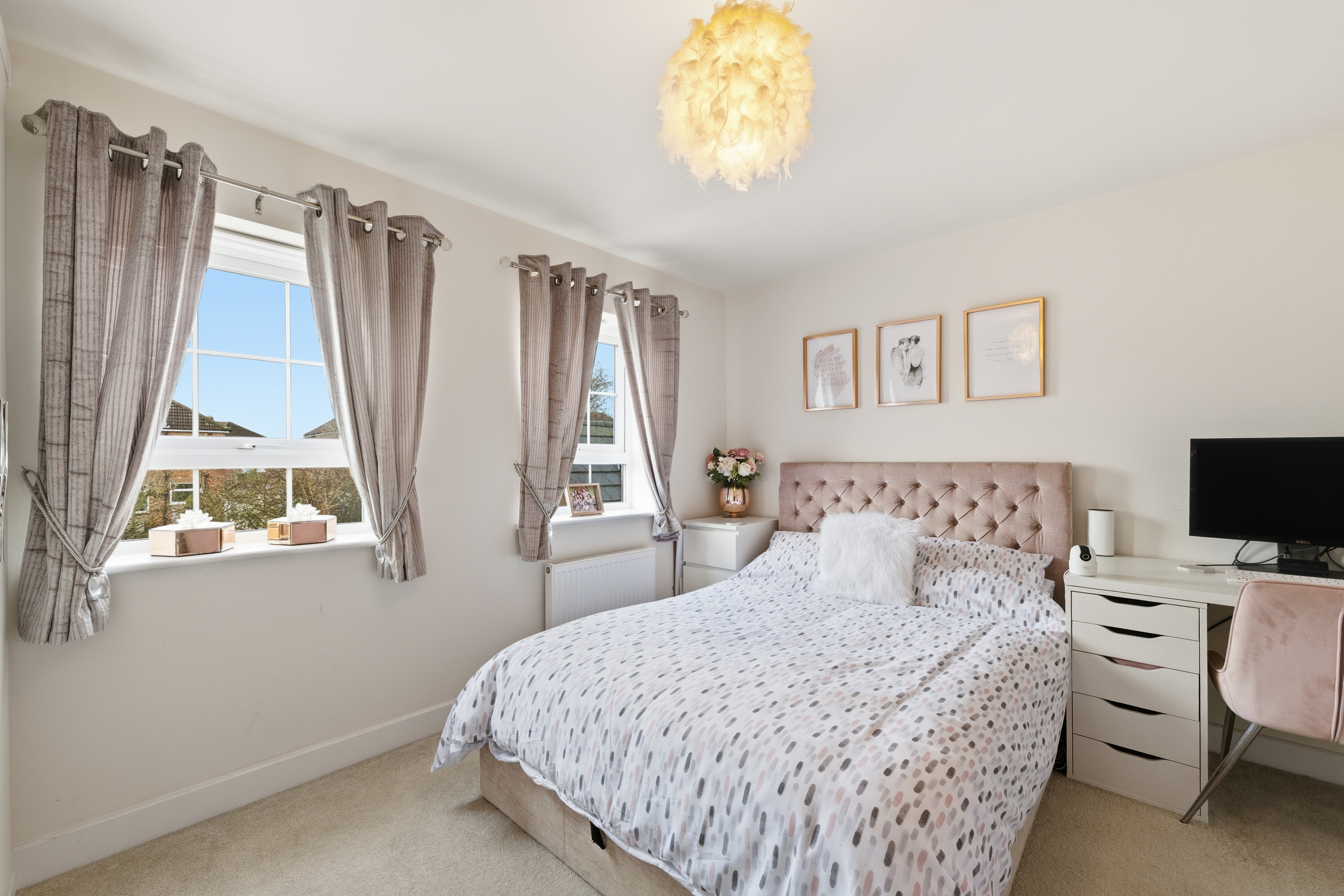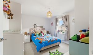 This exceptional four double bedroom, three-bathroom detached house offers an outstanding blend of contemporary design, versatile living spaces, and impressive outdoor amenities. Constructed by David Wilson Homes to the extremely popular ‘Winston’ design and boasting three generous reception rooms, this home is ideally suited for families seeking space, comfort, and modern convenience. The property’s attractive brick facade, large windows, and neatly landscaped front garden with manicured hedges create strong kerb appeal, while off-road parking and a detached double garage provide ample space for vehicles and storage. The spacious, well-maintained rear garden is a true highlight, featuring a lawn, paved patio and additional outdoor shed - perfect for entertaining, relaxation, and family activities. French doors from the main living areas offer seamless access to the garden, enhancing the sense of indoor-outdoor living.