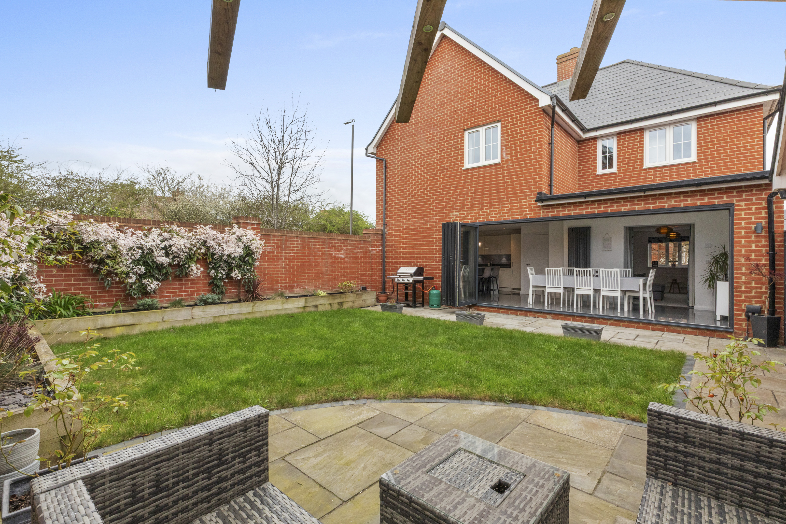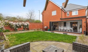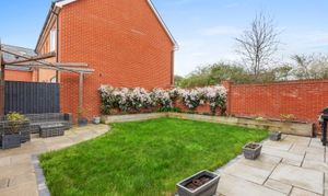 South facing landscaped rear garden offers a private and tranquil outdoor space, thoughtfully designed for both relaxation and recreation. Mature planting and well-maintained lawns create an attractive backdrop for family gatherings or summer barbeques. The garden is fully enclosed, making it a safe and secure environment for children and pets to play. A spacious patio area, directly accessed via the bi-fold doors from the kitchen and dining area, is ideal for alfresco dining or enjoying morning coffee in the sunshine. The property also benefits from side access, allowing for easy movement between the front and rear of the house. The driveway accommodates multiple vehicles, while the garage offers additional storage or potential for a workshop. The cul-de-sac setting ensures minimal traffic, providing peace of mind for families and a sense of exclusivity to the neighbourhood. This exceptional home truly combines stylish interiors with a generous and functional outdoor space, making it a perfect choice for modern family life.