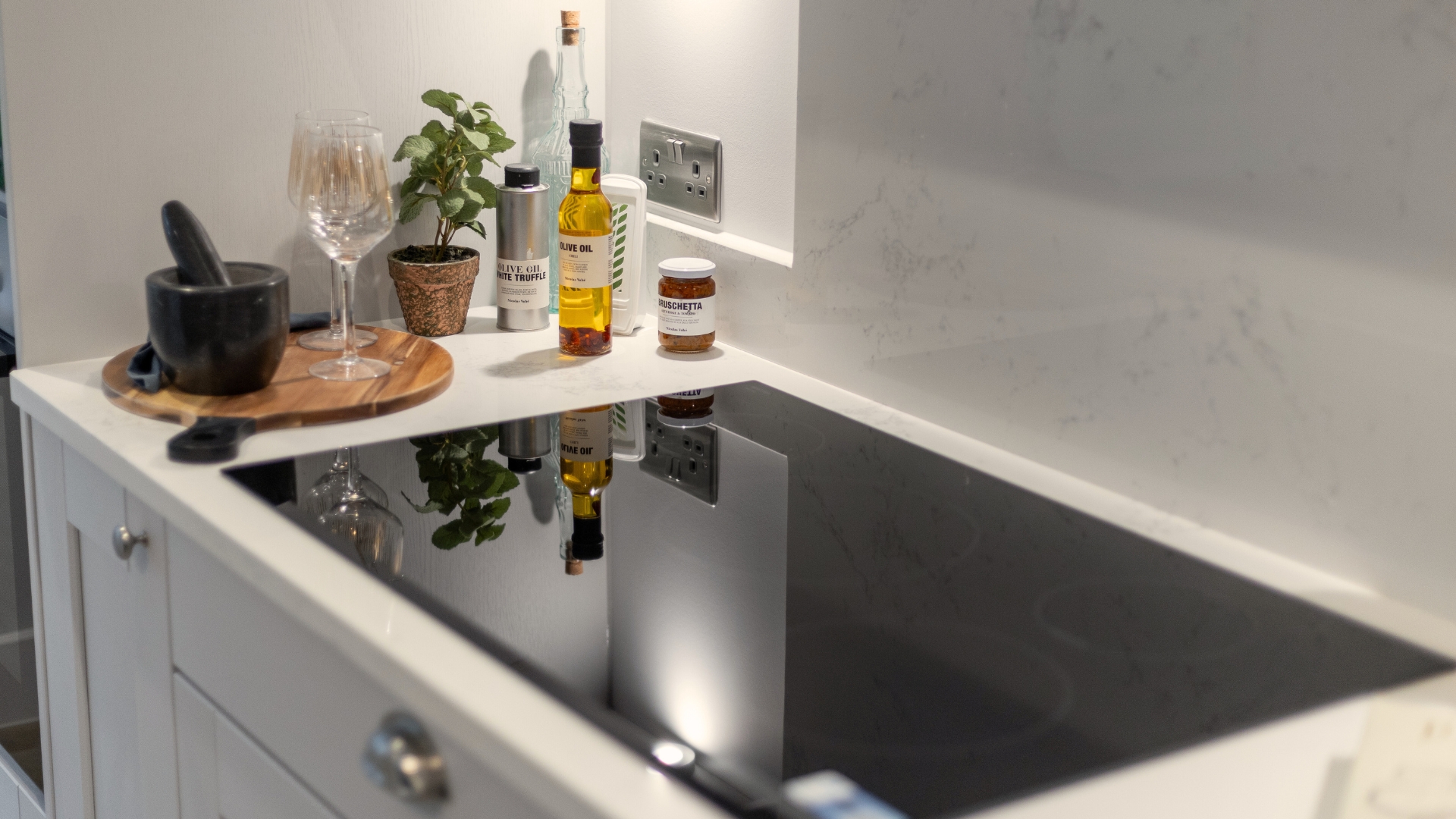 Cat 6 cabling, USB sockets to kitchen and brushed chrome power outlets throughout. Outside EV charging point