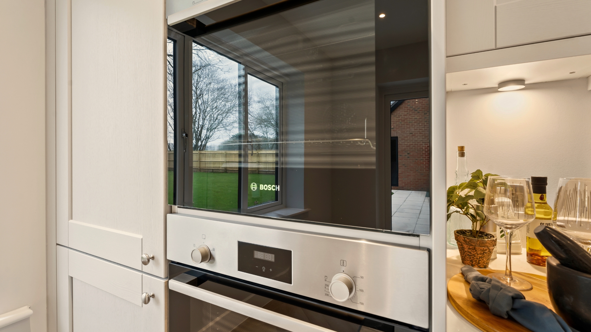 Kitchens by Roma Interiors with choice of finishes & Bosch appliances (2 ovens, 5-ring hob, fridge/freezer, dishwasher)