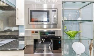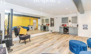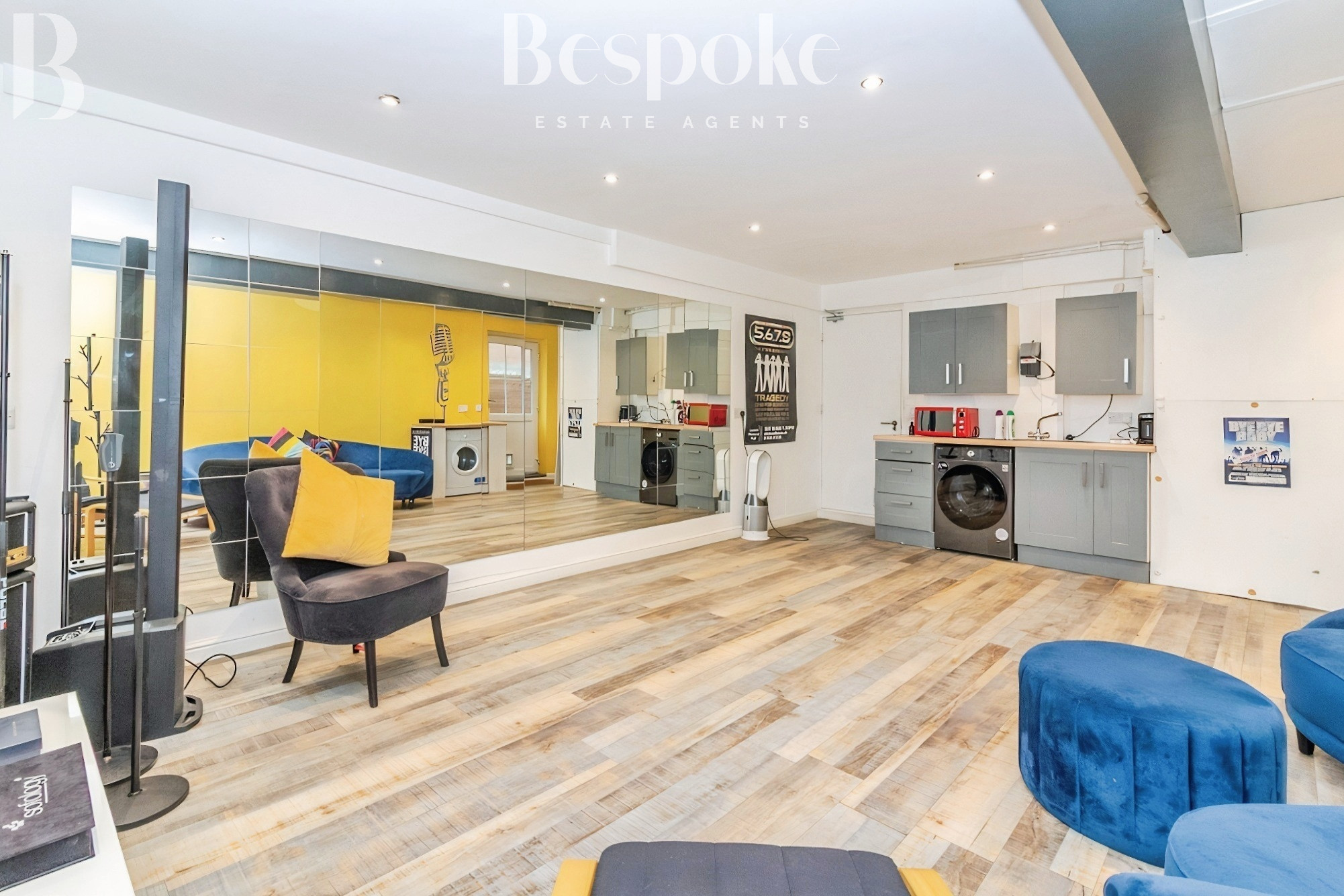 Forming part of a well-finished conversion of the original double garage, this impressive room offers a huge amount of flexible living space. Ideal as a family room, home cinema, gym, studio, or hobby room, it is bright, spacious, and designed for everyday practicality. A door leads directly out to the garden, making it a great spot for indoor-outdoor living in the warmer months. Along one side is a useful kitchenette area complete with storage, a sink, and space for domestic appliances, adding convenience for entertaining, working, or creative projects. The room enjoys good natural and artificial light, full-height mirrors that enhance the sense of space, and a modern finish throughout, giving it endless potential for a wide range of lifestyles.