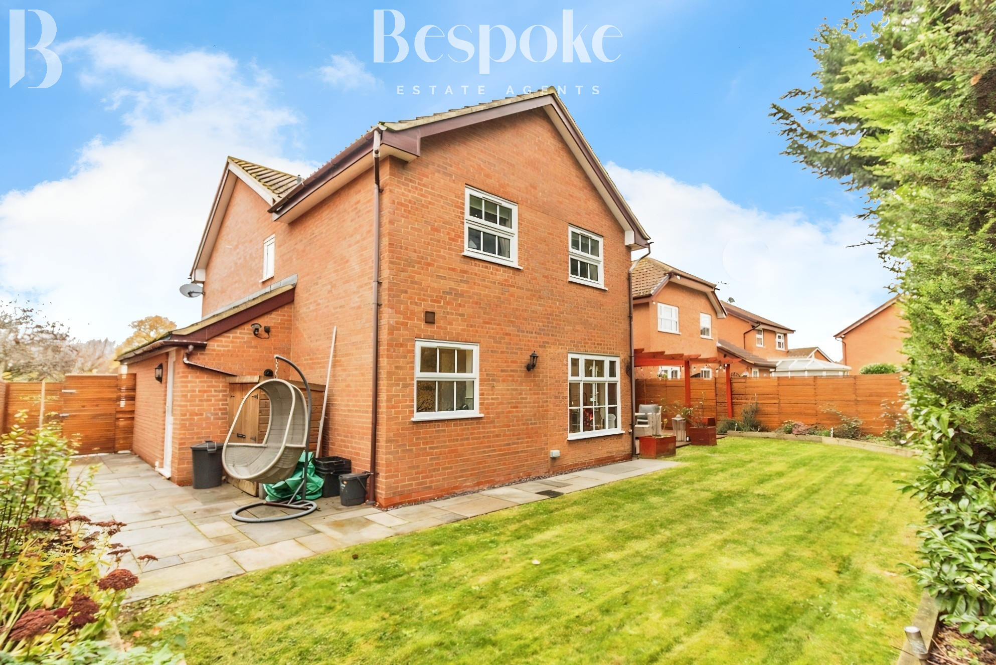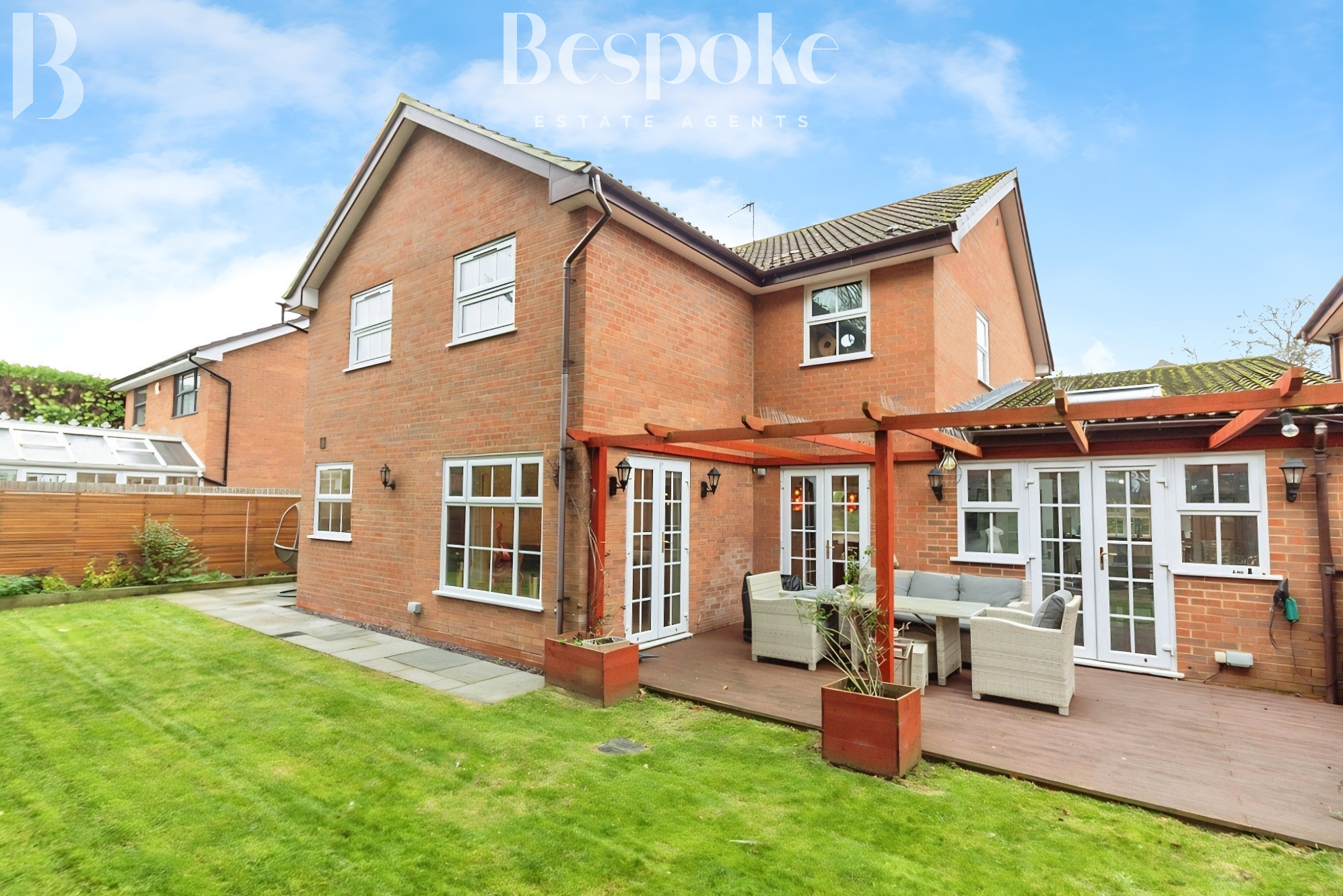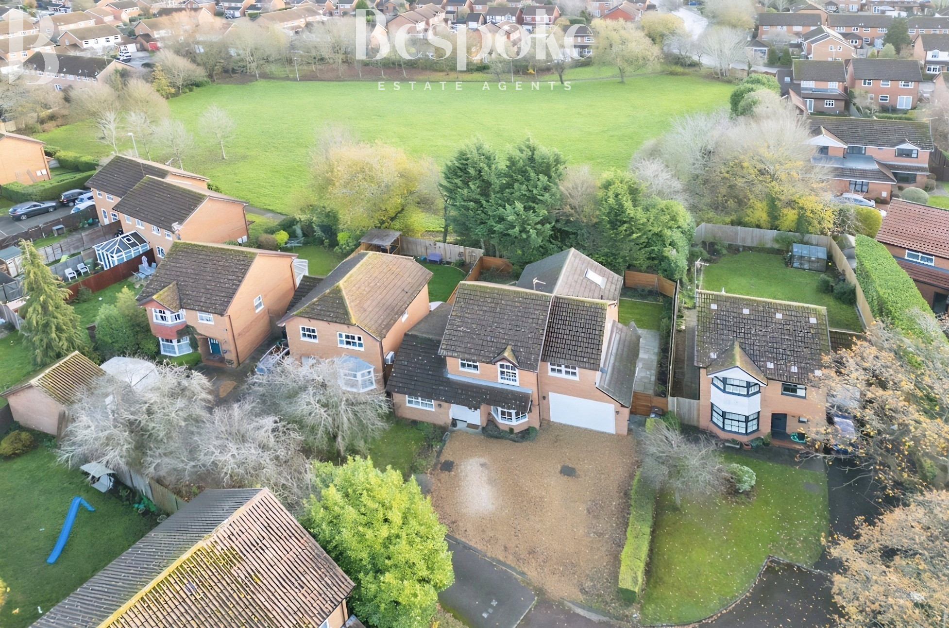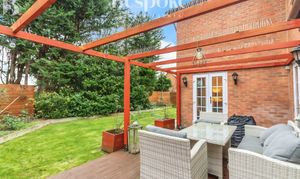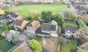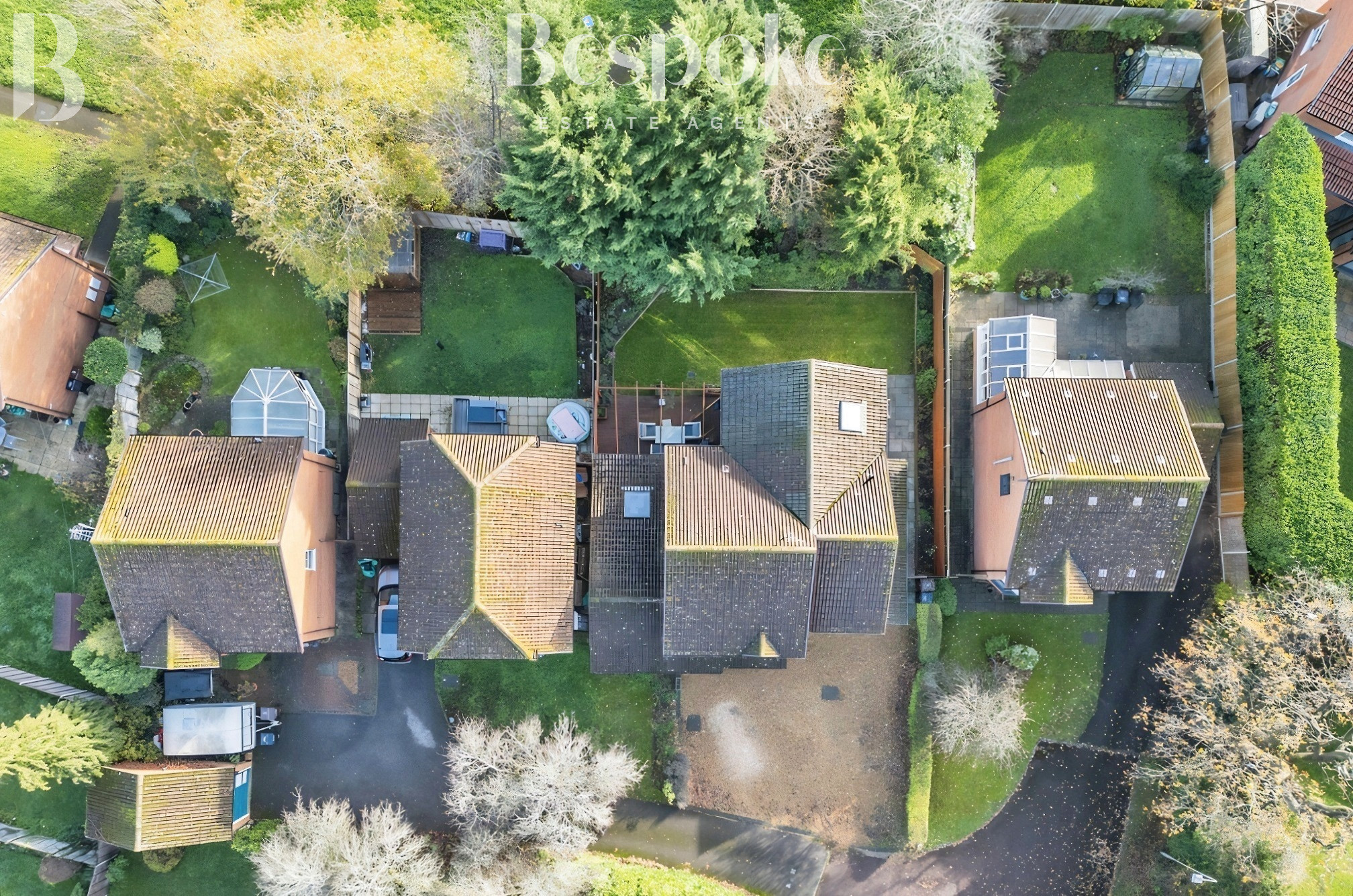 The rear garden is a standout feature of this home. South easterly facing and incredibly private, it enjoys a mature tree line and established planting that creates a natural green backdrop. As the aerial shots show, the garden backs directly onto a wide open green space, giving you no properties behind and a real sense of openness and seclusion. A large central lawn provides plenty of usable space for children, pets, or entertaining, with well maintained borders adding colour and structure. There is a spacious decked terrace directly off the family room, complete with a timber pergola that makes it ideal for outdoor dining or relaxing. Paved pathways run around the side of the house, giving easy access to the front via a secure side gate. A bright, peaceful and private garden, perfect for families or anyone who loves their own quiet outdoor space.