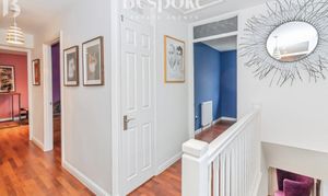 The first floor is centred around a bright landing with a window to the side, allowing natural light to flow through the space. There is a built-in airing cupboard for practical storage, and doors leading to all four bedrooms and the family shower room.