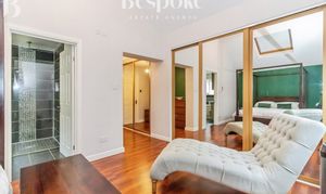 Leading off the main bedroom is a generous dressing area, designed to offer both practicality and a sense of luxury. Full-height mirrored wardrobes run along one side, providing excellent storage while adding light and a spacious feel. There is ample room for additional drawer units, making it an organised and elegant space to get ready each day.