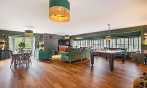 This detached bungalow has been reconfigured and updated by the current owners, to create a stunning family home with exceptional living space and generous room proportions, all finished to a high standard. Set within gardens and grounds of approximately 2 acres, behind a gated entrance and within a short walk of the village primary school.