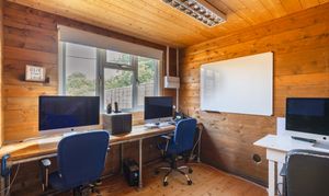 - Outbuilding comprising 41' studio with 3 office areas and shower room